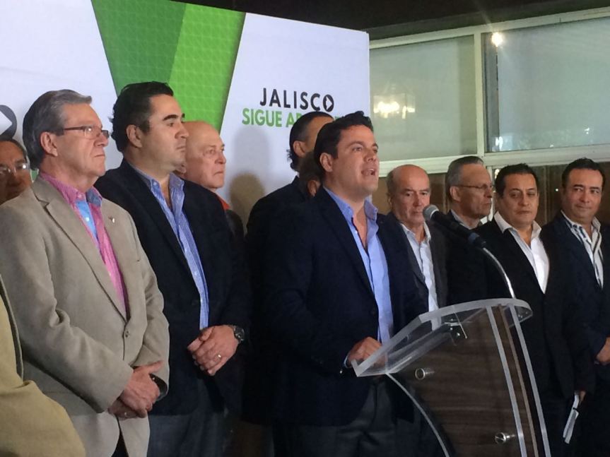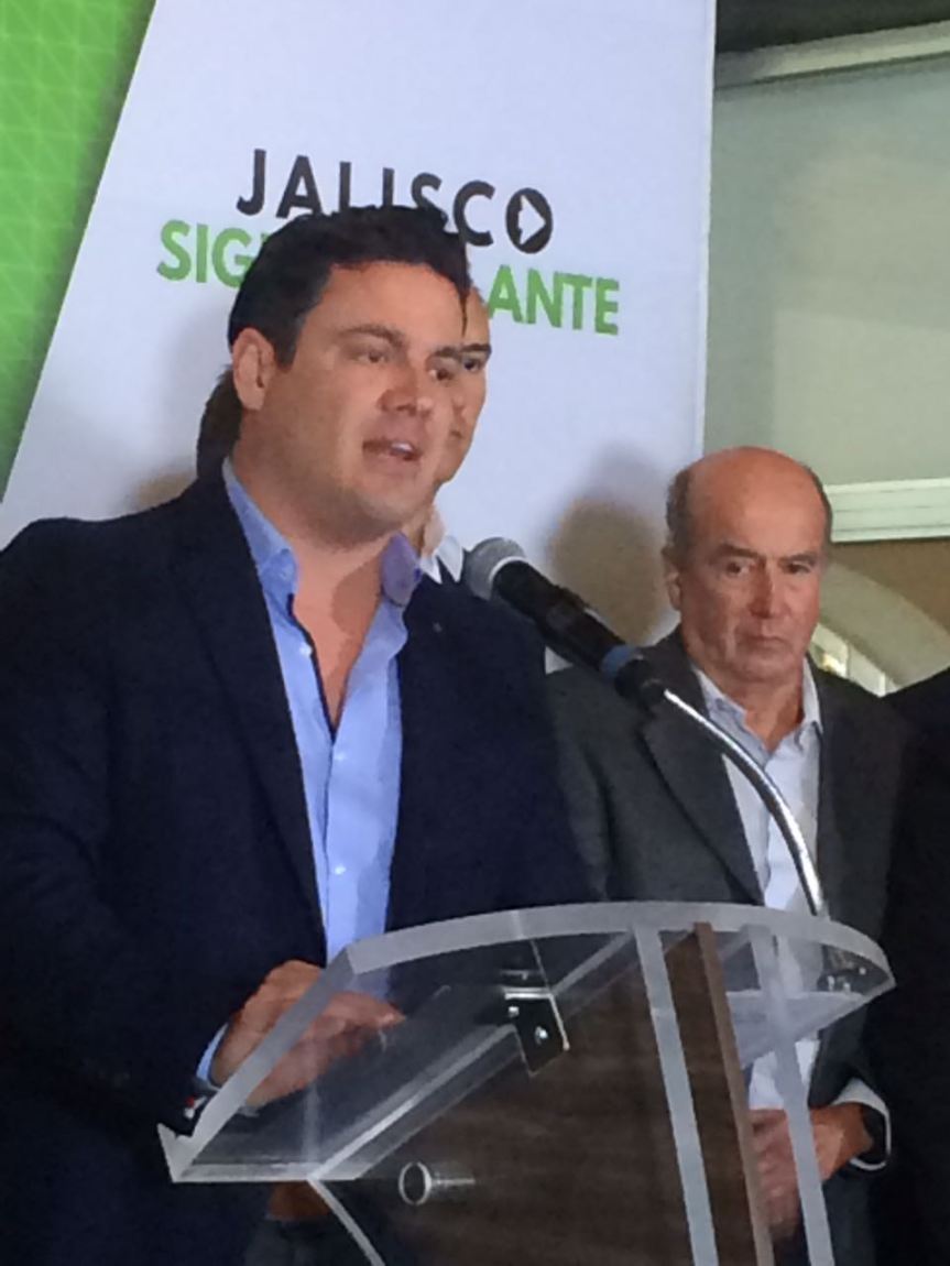 Rodeado de la plana mayor de sus colaboradores principales, Jorge Aristóteles Sandoval Díaz, presentó en rueda de prensa cinco medidas que se implementarán para contrarrestar los efectos en la economía social que produce el llamado gasolinazo que aplicó desde el primero de enero, el presidente de México, Enrique Peña Nieto.
