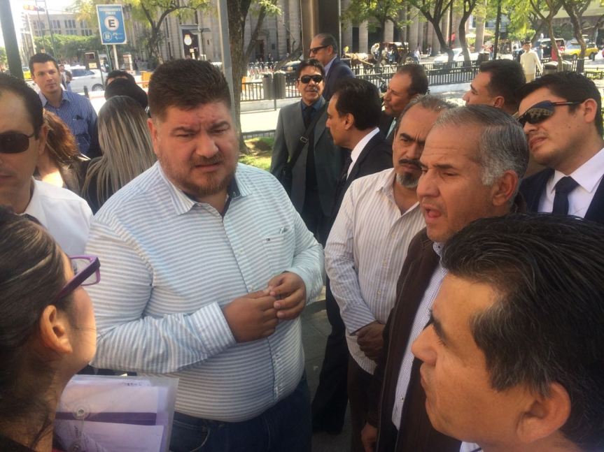 Cabe señalar que con este grupo de manifestantes se encuentra el secretario general del Sindicato Único de Trabajadores del Poder Judicial, Jesús Muñoz Dueñas.