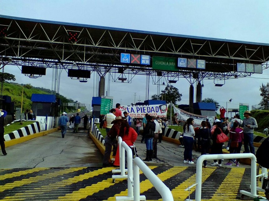 Docentes del SUACOBAEJ tonan la caseta de Ocotlan, gdl-Morelia