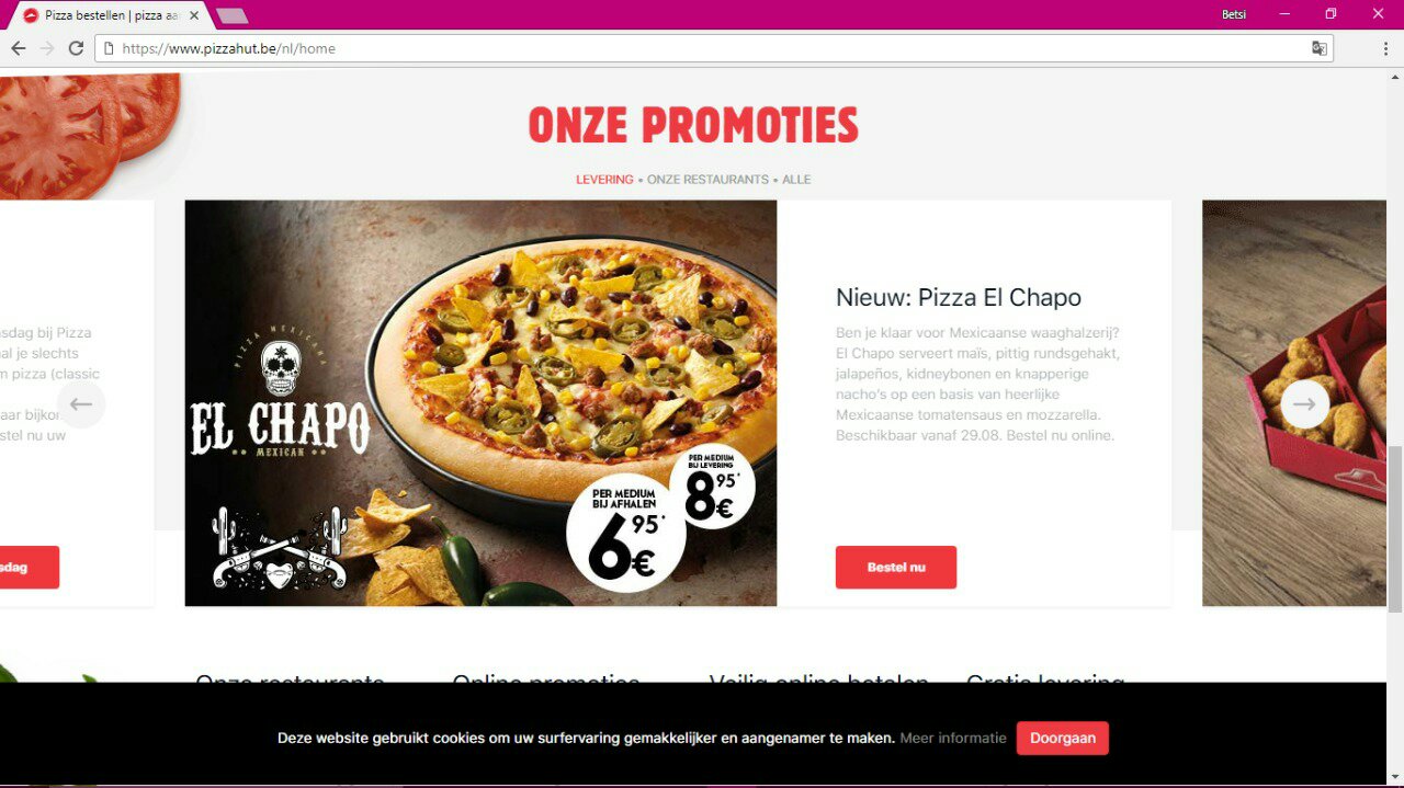 La cadena Pizza Hut rebautizó la pizza mexicana con el nombre de El Chapo, y se vende en Bélgica.