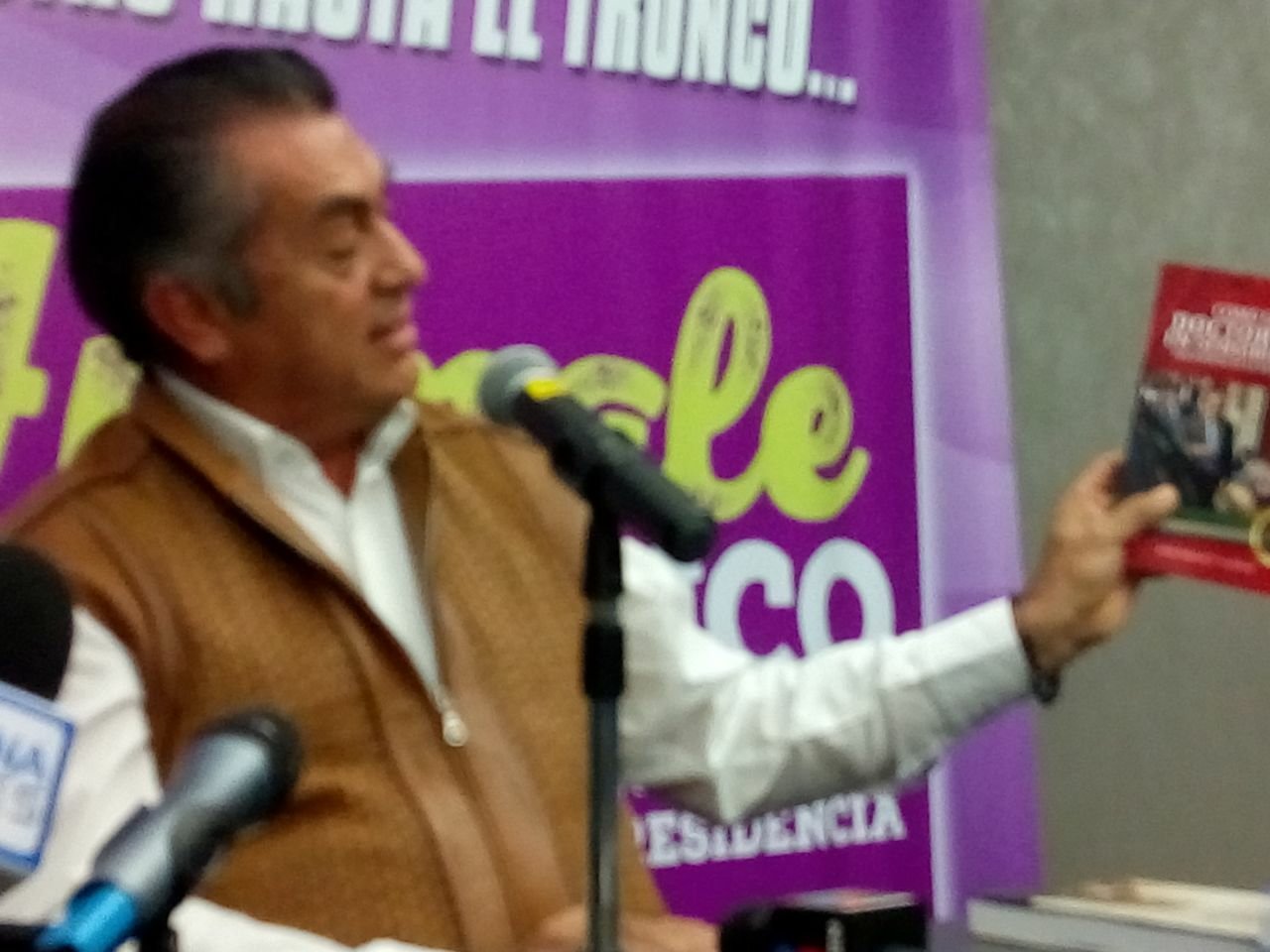 De visita en Guadalajara para presentar un texto en la Feria Internacional del Libro, (FIL), el Gobernador Nuevo León dijo a mediados de este mes solicitará licencia a su cargo, y se concentrará en la siguiente etapa de su trabajo político en las entidades de la Ciudad de México, Veracruz, Puebla, Guanajuato, que seguirán la misma estrategia que en Jalisco para completar las anuencias ciudadanas a su candidatura, «me voy a venir a vivir aquí una semana, aproximadamente, y voy a recorrer las calles las cafeterías, las cantinas, las iglesias, los bautizos, las bodas, las quinceañeras, e iré personalmente a buscar la posibilidad».