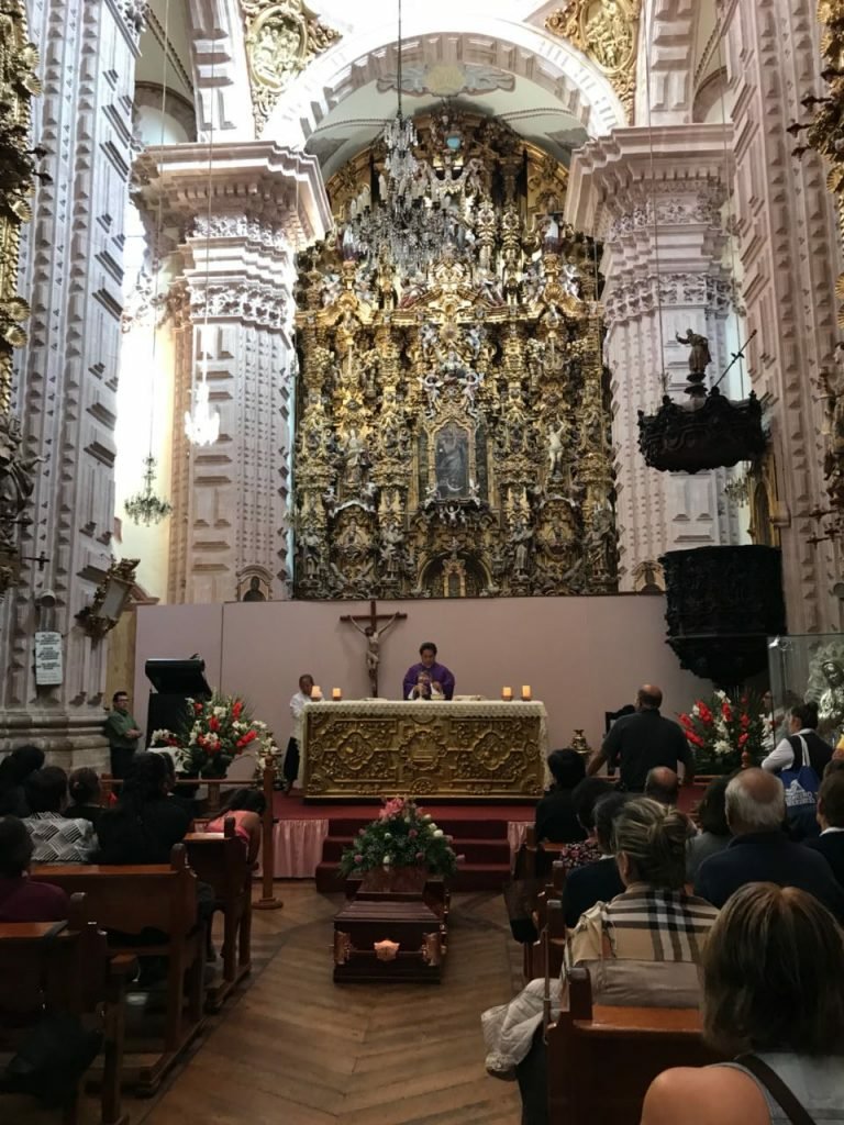 Cientos de personas acudieron a la iglesia de Santa Prisca en Taxco Guerrero, donde se ofició una misa de cuerpo presente para despedir a Magdalena Aguilar Romero quien fue asesinada en esta localidad.
