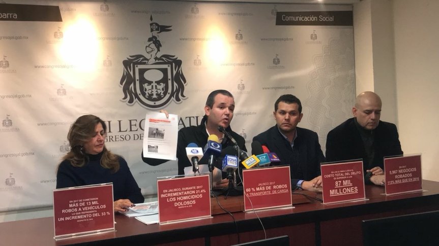 Aseguró que dos de tres jaliscienses son víctimas de delitos; y que los robos violentos de vehículos han subido un 198 por ciento, y los homicidios dolosos un 40 por ciento.