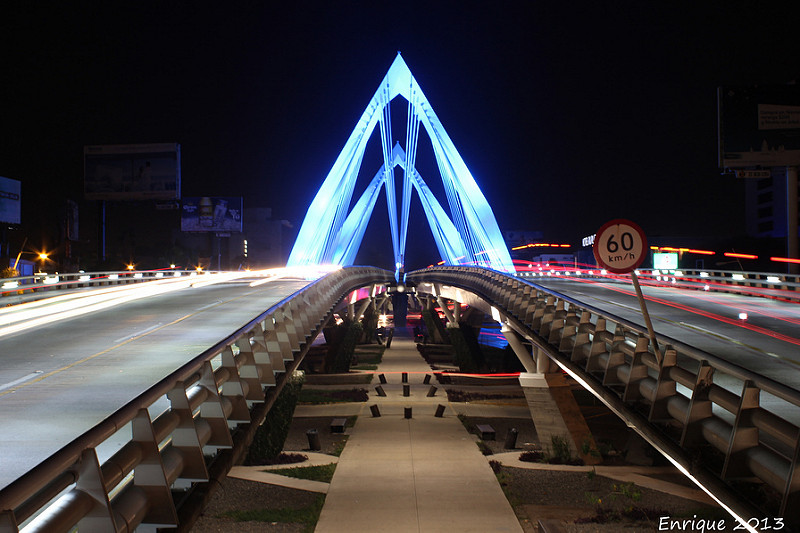 El Puente Atirantado, como es mejor conocido, fue un proyecto relativamente necesario, usamos ese término ya que estrictamente el modelo de puente es para el cruce de un cause, sin embargo no se puede negar la estética, el bello juego de luces, y el ícono de la ciudad que se ha venido convirtiendo.
