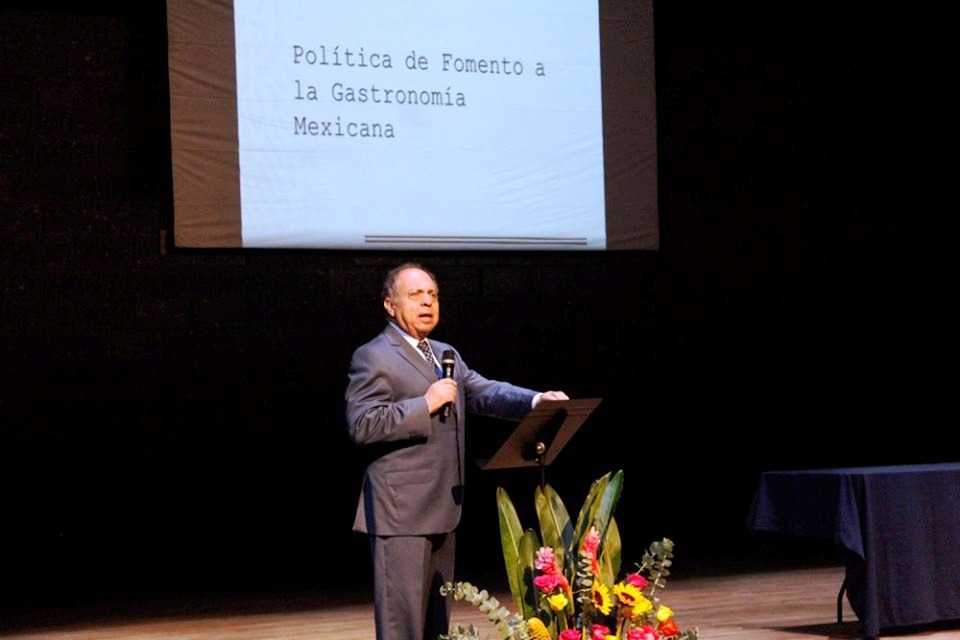 La segunda exposición fue “Política de Fomento a la Gastronomía Mexicana”. que debió ser presentada por el Sub Secretario de Turismo del Gobierno Federal, Humberto Hernández Haddad y que en su representación, correspondió a José Zeind Domínguez, de la Dirección de Desarrollo de Turismo Cultural y Salud de esta secretaría federal el desarrollarla; sin embargo, durante los minutos (que se hicieron eternos) el funcionario federal se dedicó a dar lectura a un documento simple, con datos de referencia (del Banco Interamericano de Desarrollo de 2015 y 2016) pero carente de información actualizada y mucho menos que reflejara la política del gobierno actual en torno a esta materia.
