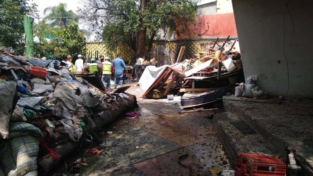 Marco Castro.-Salvados los frenos legales que impedían el desalojo de la finca, finalmente esta mañana las autoridades tapatías lograron ingresar a la derruida edificación para desalojar a aproximadamente 40 personas en situación de calle que habían hecho del lugar su hogar y que lo habían convertido en un verdadero foco de infección debido a las condiciones de suciedad y abandono en el que se encontraban.