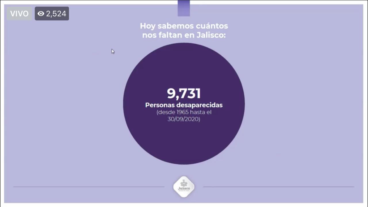 En Jalisco se tiene una incidencia de 9 mil 739 personas desaparecidas desde 1965 hasta el 30 de septiembre de 2020, y de ese universo 5064 corresponden a 2019, y 3173 en 2020. Se han localizado 6 mil 948.