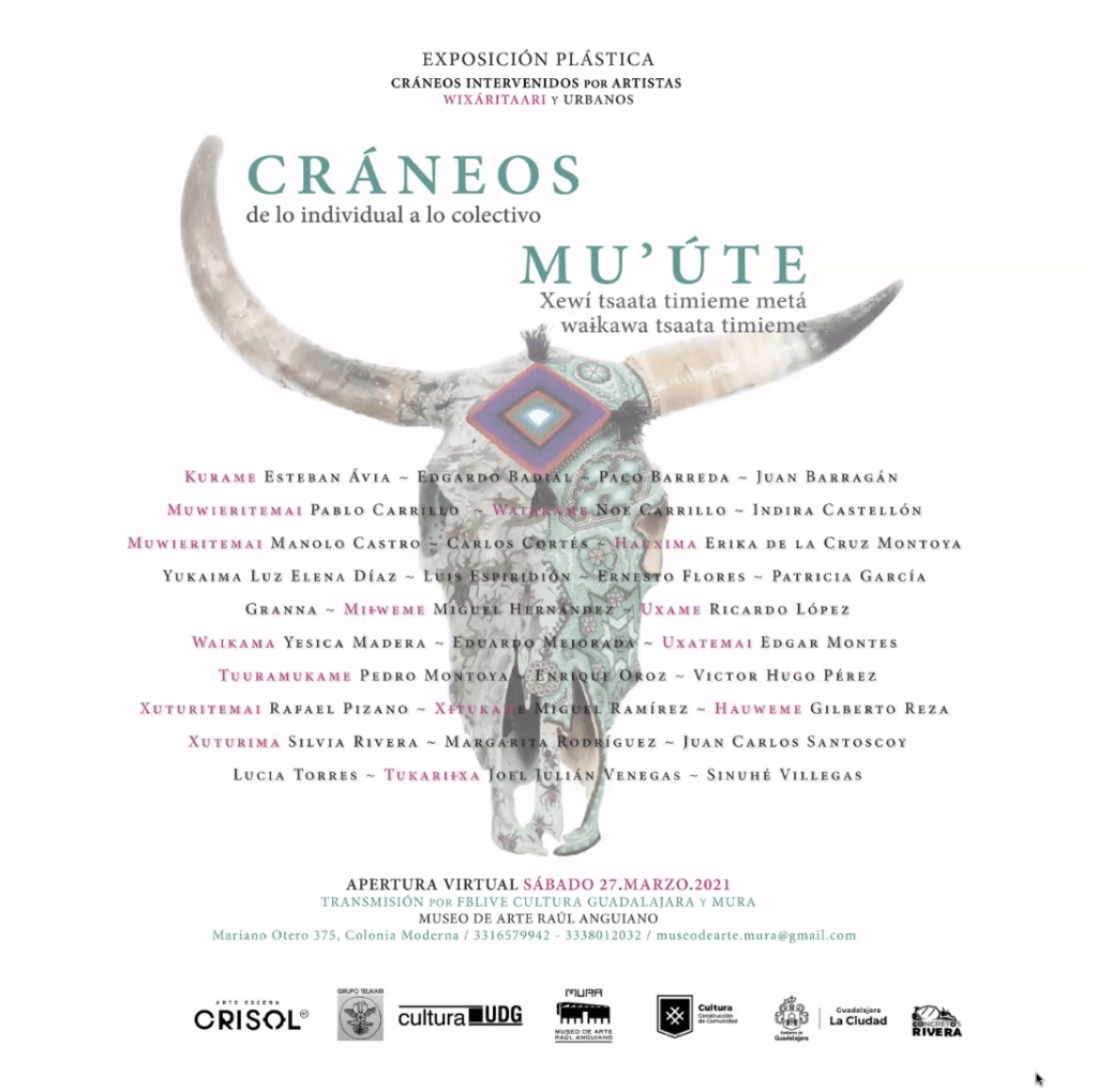 Esto, en la muestra Cráneos. De lo individual a lo colectivo – Mu’úte. Xewí itsaata timieme metá waikawa tsaata timieme, en la que participan 16 artistas wixáritari y 16 urbanos de Guadalajara.