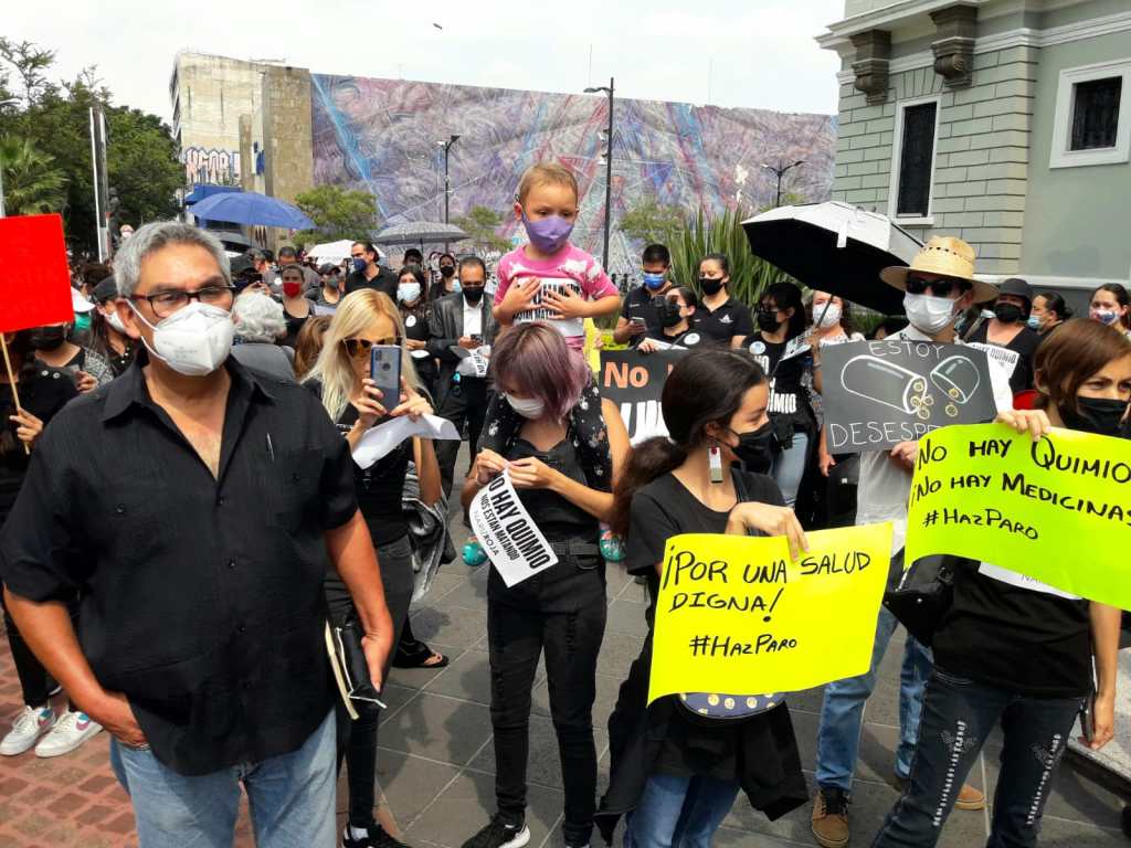 “Hoy venimos a levantar la voz a pedir medicamentos de primera en tiempo y forma, no compras a la carrera como va a pasar, si llega a Jalisco llegará entre julio y agosto, pero en partes, así no funciona, se tienen que tener tratamientos íntegros y completos que realmente curen al niño, al adulto a las mujeres con cáncer que tienen que comprar un medicamento que vale 50 mil pesos cada 21 días por nueve meses, quién de aquí tiene para hacer eso”, lamentó Alejandro Barbosa.