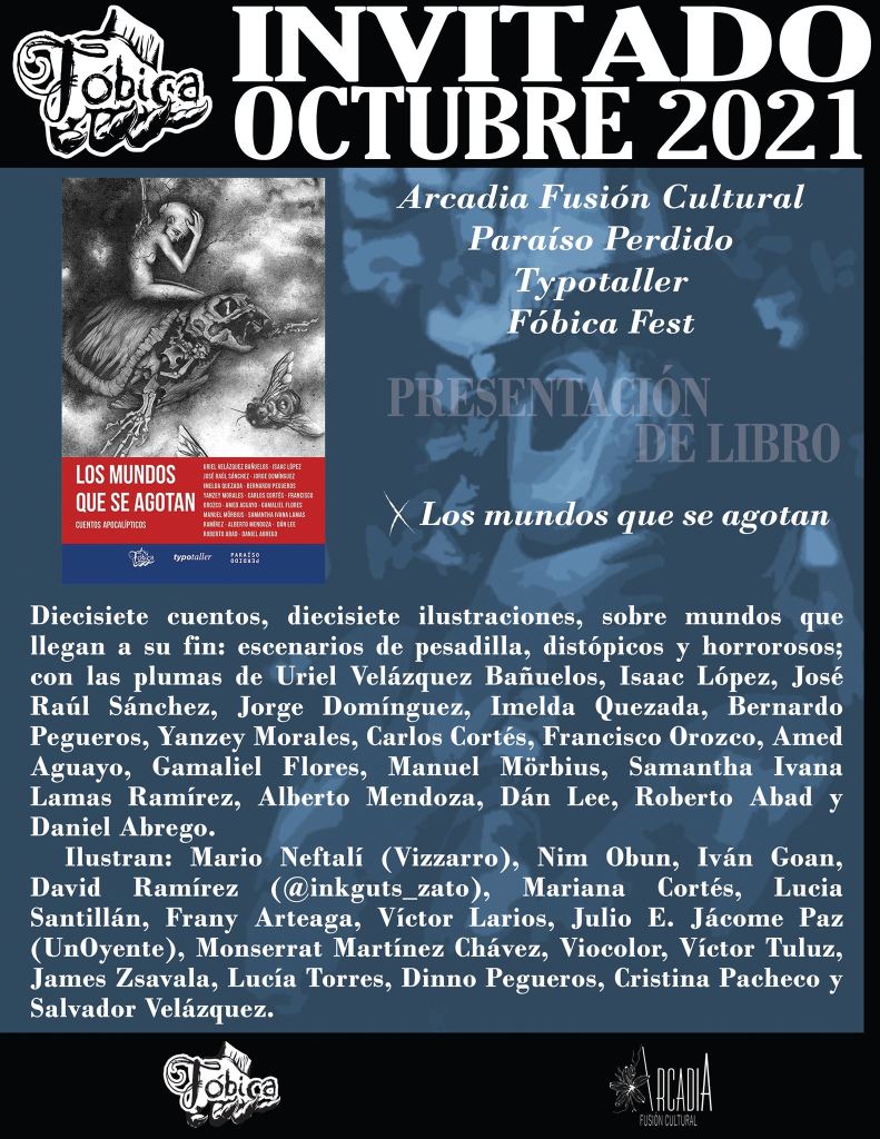 Otro de los eventos estelares es la presentación de una antología de cuentos que surgen de convocatorias a nivel nacional, el año pasado se abrió la propia en donde se solicitaron a los interesados material apocalíptico, sin saber o como premonición de cómo se pondría la situación con el tema de pandemia.