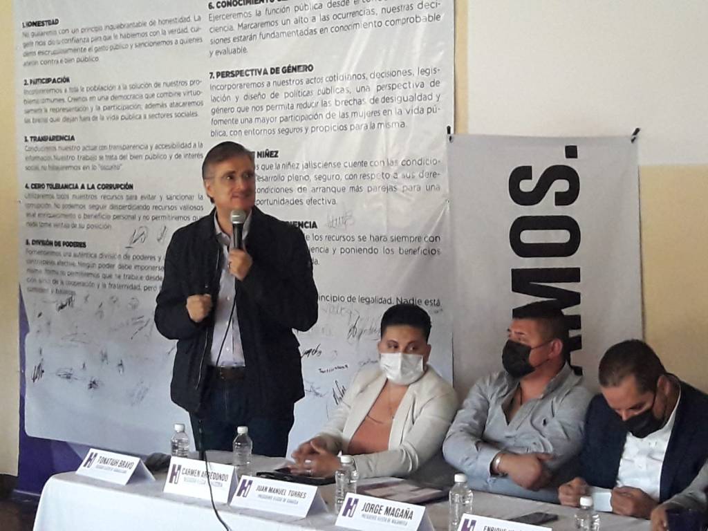 En los ejes rectores que se firmaron en el rubro de la honestidad, se refiere a cuidar escrupulosamente el gasto público y sanción a quienes atenten contra del erario del municipio, en la participación llama la incorporación de toda la población a la solución de los problemas comunes, en transparencia la accesibilidad a la información, en el rubro de la tolerancia y corrupción la utilización de todo recurso para evitar y sancionar la corrupción, en la división de poderes un sistema de contrapesos efectivo, ningún poder debe imponerse a otro, en el conocimiento científico, es el ejercer la función pública desde el conocimiento y la ciencia, en la perspectiva de género será el incorporar las decisiones, legislación y diseño de políticas públicas, que permita reducir las brechas de desigualdad, en visón de la niñez, será el priorizar y que cuenten con las condiciones para un desarrollo pleno.