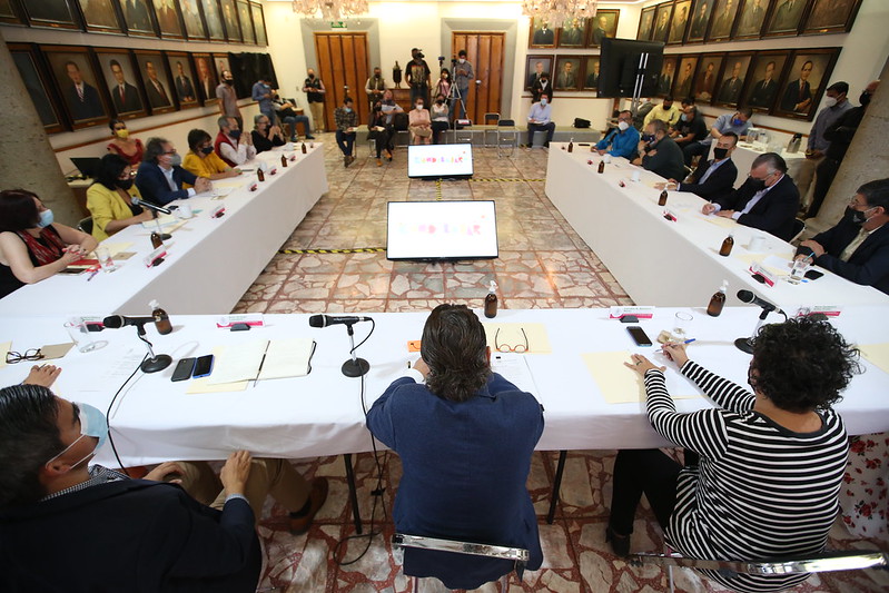 Frente a un nutrido grupo de intelectuales y emisarios de entidades como el ITESO, UNIVA, Secretaría de Cultura, Feria Internacional del Libro, Universidad Panamericana, entre otros, Lemus Navarro se pronunció a favor de llevar la cultura a las calles y a los espacios públicos.
