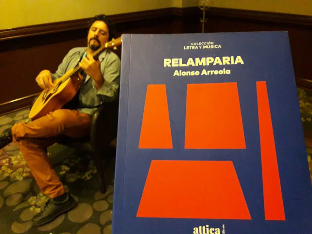 Se trata de Alonso Arreola, quien con esa apariencia de joven despreocupado es sumamente reconocido en el mundo de la música, y por sus entrevistas hechas por él a otros creadores, editoriales y un sinfín de publicaciones en periódicos y revistas, vino a la FIL Guadalajara a presentar su libro, o mejor dicho a deslumbrar con esos relámpagos que se dejan ver en cada una de sus brevedades, en esa musicalidad de las palabras que llegan a hechizar al lector.