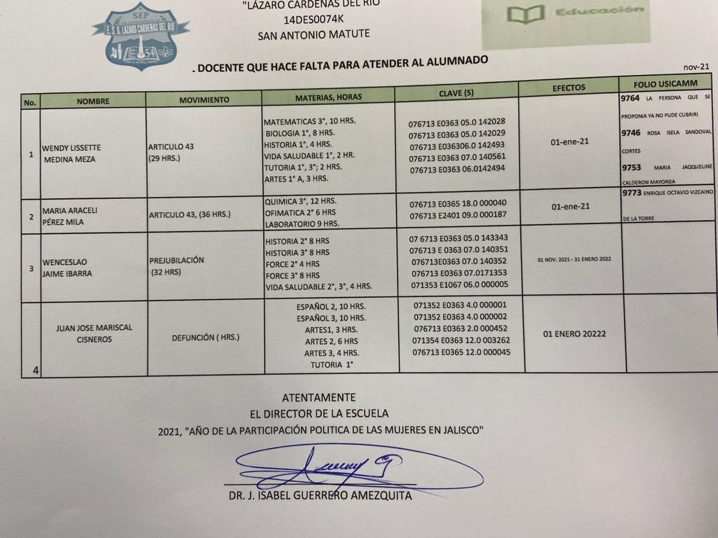 Una de las madres de la escuela informó que desde el pasado 31 de enero se asignaron profesores a diversas Secundaria en el Estado sin salir asignados ningún profesor a dicha secundaria.