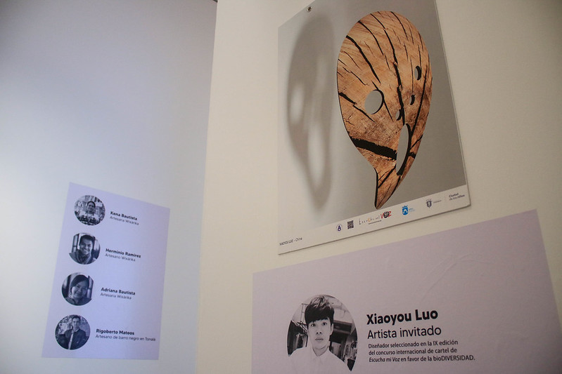 La exposición “Cosmovisión Wixárika” consiste en 10 piezas creadas como parte de la segunda edición del Premio con Causa Azul; esto por tres grandes maestros artesanos Wixaritari que son Kena Bautista, Adriana Bautista y Herminio Ramírez, inspiradas en el cartel “Scream” del diseñador chino Xiaoyou Lou.