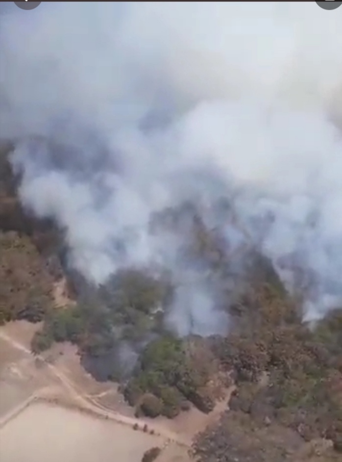 El fuego se reportó en el paraje Bajío Milpillas, localizado en la prolongación Mariano Otero, donde se queman varias hectáreas de hojarasca y maleza dentro del área natural protegida.