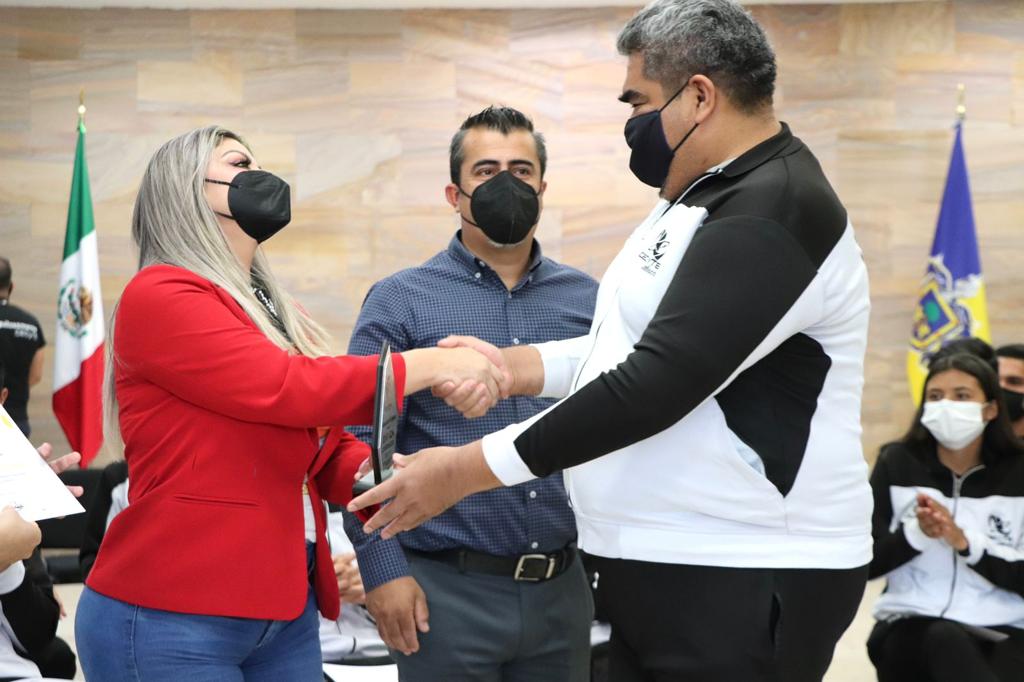 Por el Encuentro Nacional Deportivo de los CECyTES 2021 efectuado en Aguascalientes se entregaron reconocimientos a 44 alumnas y alumnos: 7 asesores, 18 estudiantes por obtener el Primer lugar en Futbol; 12 de Voleibol que obtuvieron el Tercer lugar y 7 de Atletismo quienes obtuvieron medallas de oro, plata y bronce.