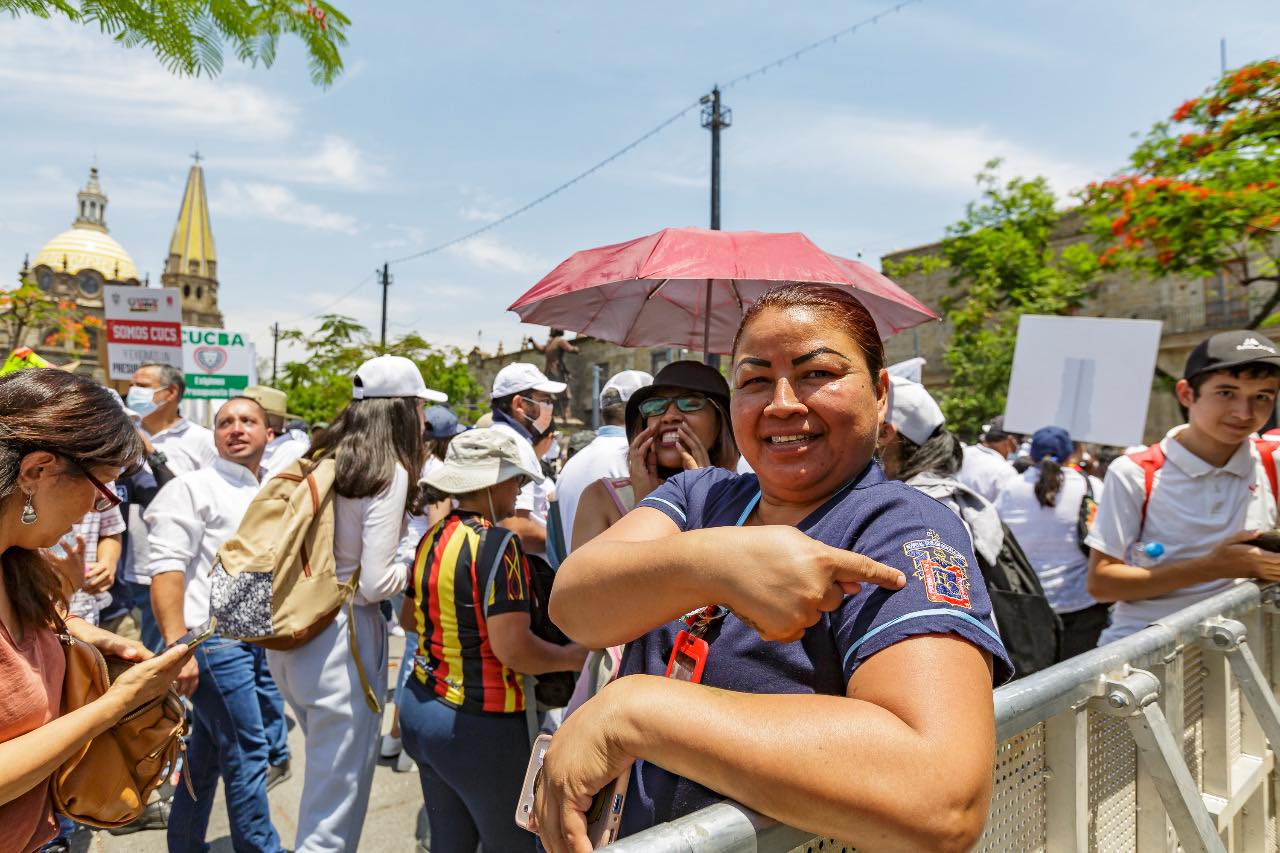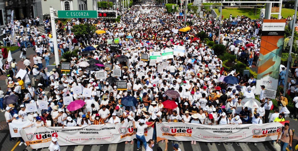 “Esta lucha ya no es 140 millones de pesos, esta lucha a partir de hoy es por la dignidad, la legalidad y el respeto de la universidad”, con una participación de entre 46 mil (según protección Civil de Guadalajara) y 103 mil (según los universitarios).