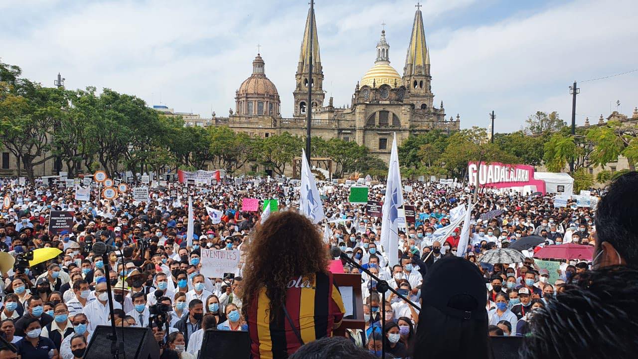 Así ocurrió con el contingente de Hospitales Escuela de la Universidad de Guadalajara, el Hospital Civil Fray Antonio Alcalde y el Hospital Civil Juan I. Menchaca, quienes al ritmo del «Negro José» se integraron a las demás manifestaciones en la Plaza de la Liberación.