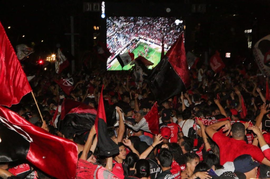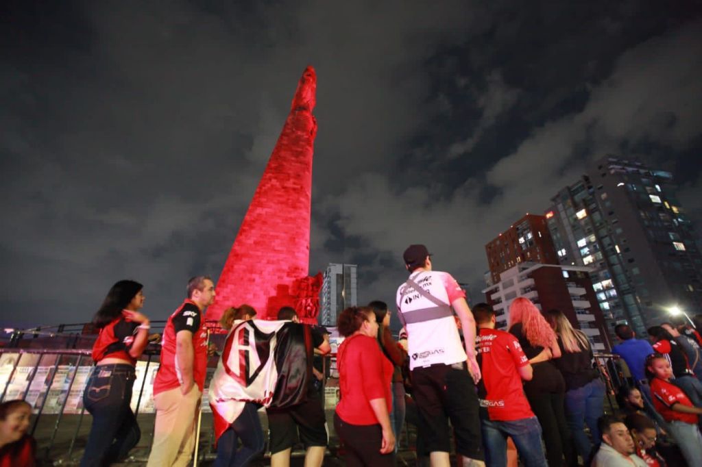 Los aficionados, más de seis mil, reunidos en su sede de festejos: la Glorieta de los Niños Héroes en Guadalajara, también llamada de los desaparecidos, vivieron un vaivén de emociones desde el inicio del cotejo por tener dos goles a favor, y cuando los tuzos voltearon el marcador por 2 a 1, la postal de los seguidores atlistas se distinguía por la imagen de muchos con rosarios en la mano, y rezando.