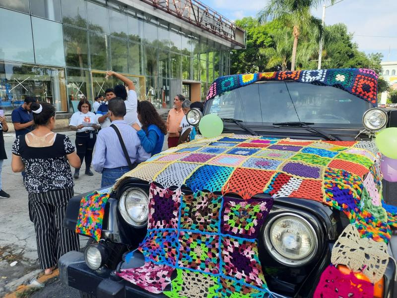 La actividad fue parte de la campaña Grafiti Tejido Jalisco, implementada por un grupo de personas con discapacidad y sus familiares, miembros de distintas asociaciones, quienes estuvieron recolectando los cuadritos de tejido a partir de centros de acopio en diferentes instituciones, entre ellos las sedes de UDGVirtual.