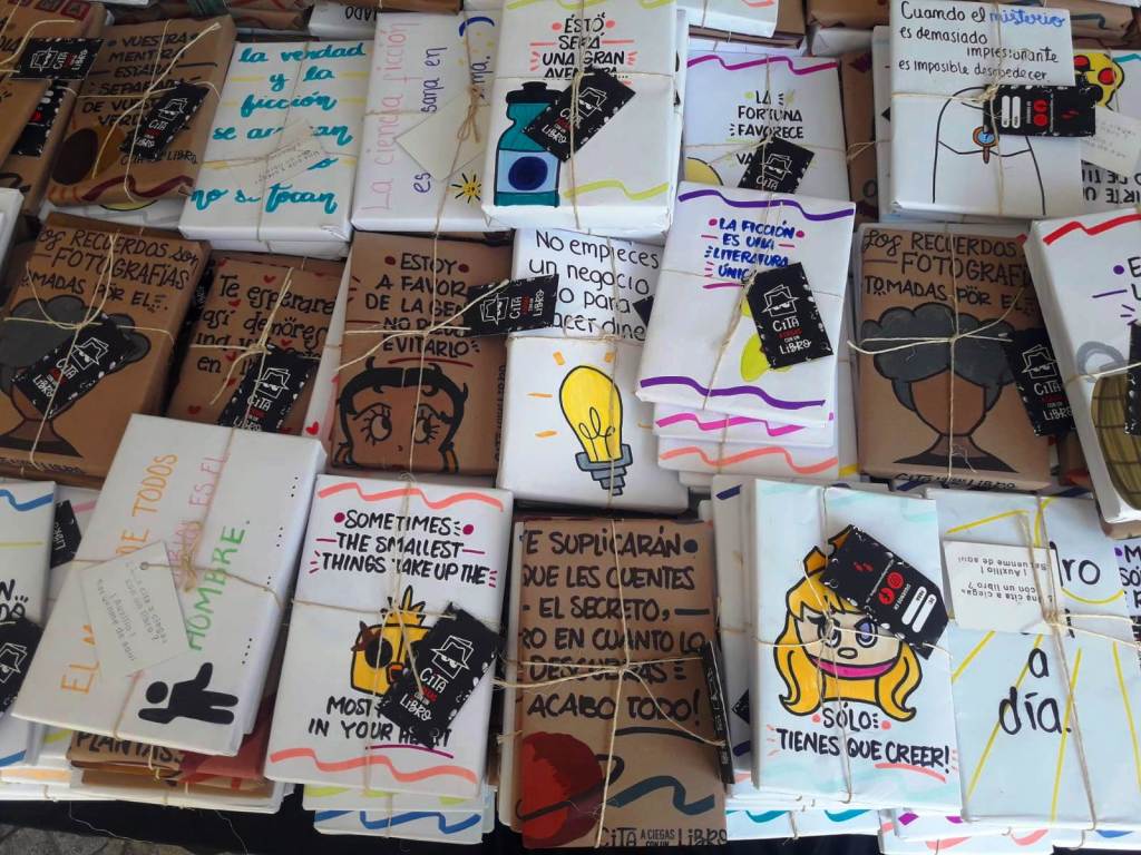 Dentro del marco de Guadalajara Capital Mundial del Libro 2022 un stand te invita a disfrutar de una experiencia única y divertida, comprar un libro solo por el pequeño mensaje de su envoltura, se trata “Cita a ciegas con un libro”, que se encuentra justo en la carpa de un costado de la presidencia municipal tapatía y que da la bienvenida a lectores y público en general para que se arriesguen a comprar un libro sin saber su contenido.