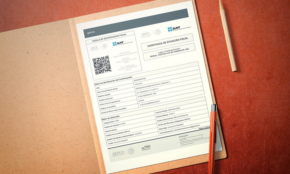 En este documento está el domicilio fiscal, el código postal y otros datos importantes en la expedición de facturas o en los recibos de nómina.