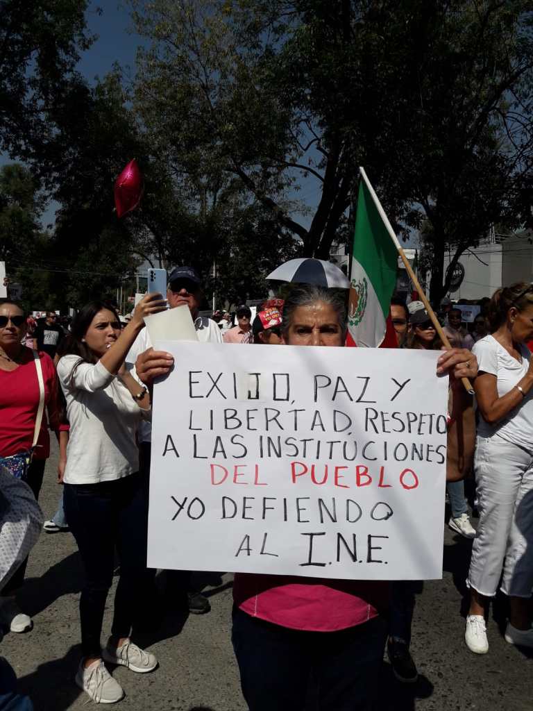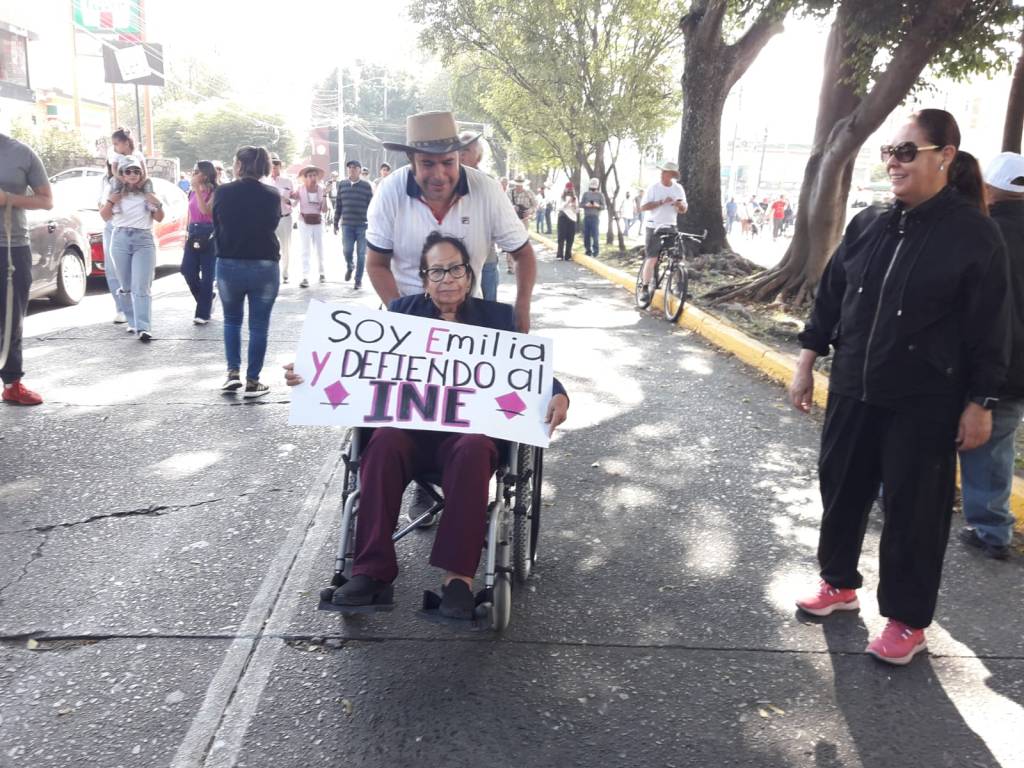 Durante el recorrido incluso las personas de la tercera edad avanzaban con tal de que el presidente de México y su partido vieran que estaban en contra de su postura y a favor del Instituto Nacional Electoral.