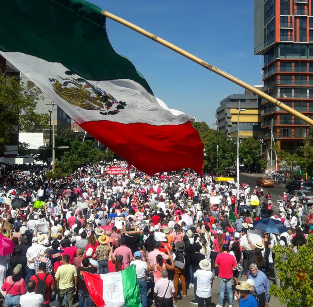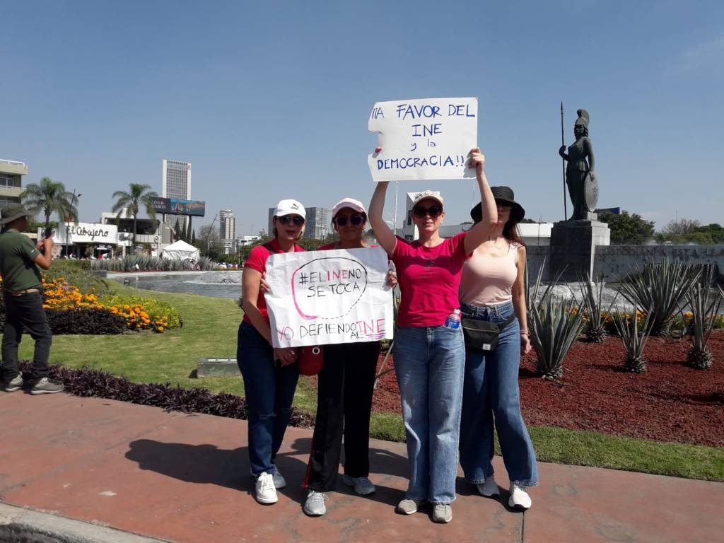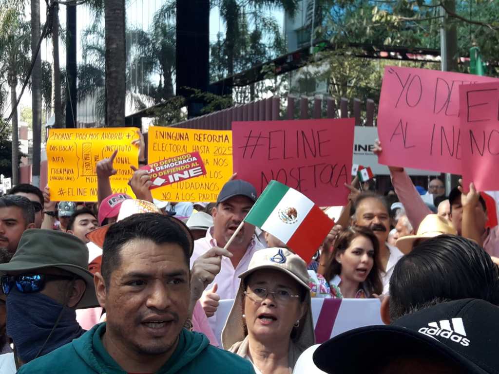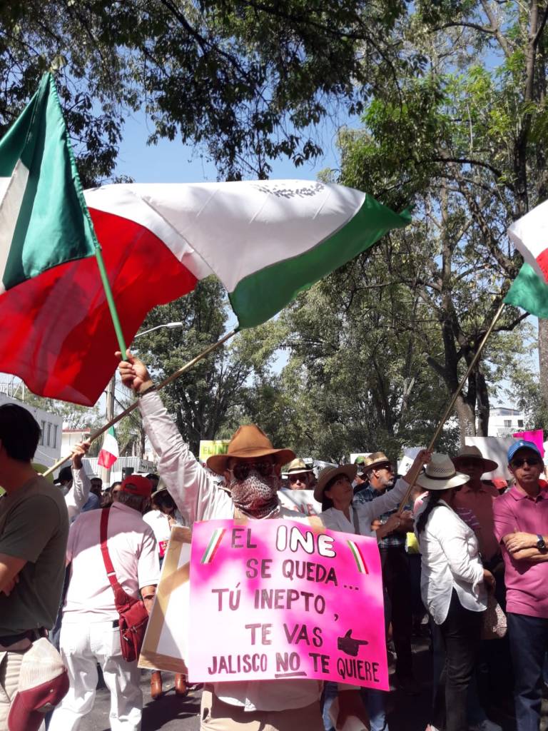 “Burro entiende, el INE se defiende”, “No somos uno, no somos 10 pinche gobierno cuéntanos bien”, “INE escucha, Jalisco te defiende”, fueron algunas de las consignas que se lanzaban ya en plena marcha, no faltaron los momentos más sentidos cuando alguno de los ciudadanos empezaba a entonar el himno nacional que de inmediato era secundado por el resto del contingente.