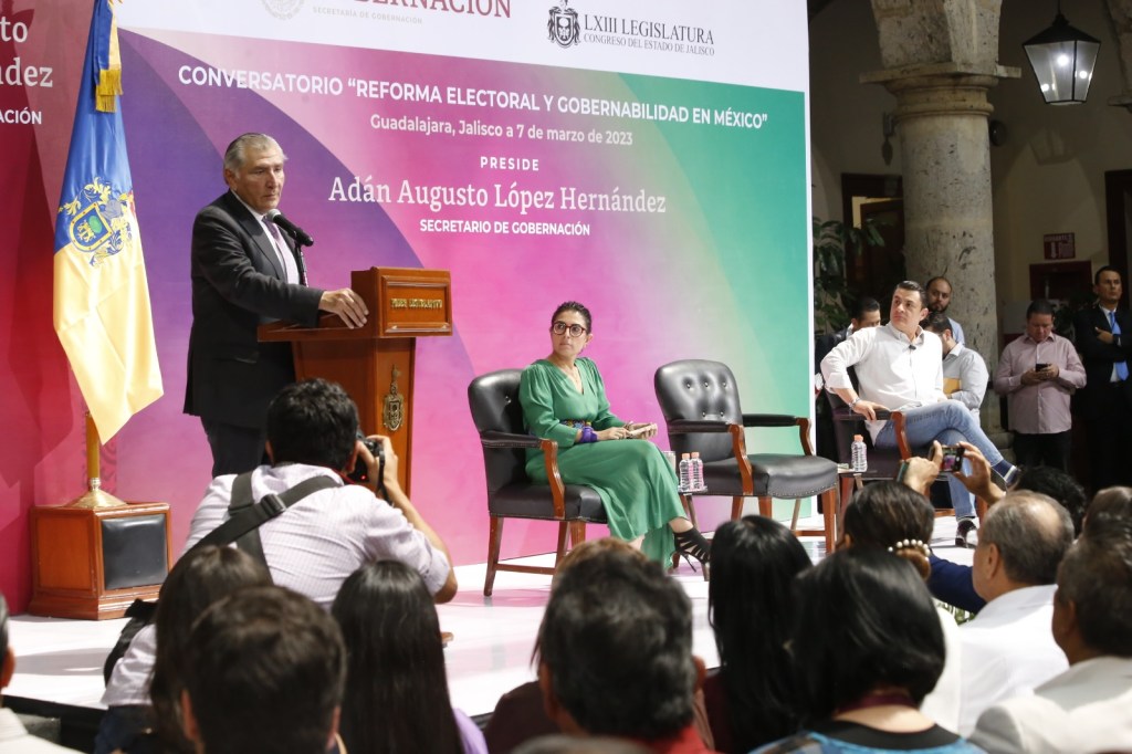 El secretario de Gobernación, Adán Augusto López Hernández, acudió al Congreso del Estado para un conversatorio que solo se trató de un espacio para exponer a los aún consejeros Lorenzo Córdova y Ciro Murayama, en donde supuestamente se hablará de las bondades de la Reforma electoral y de la Gobernabilidad en el país.