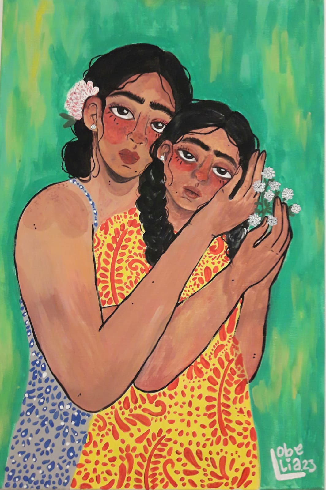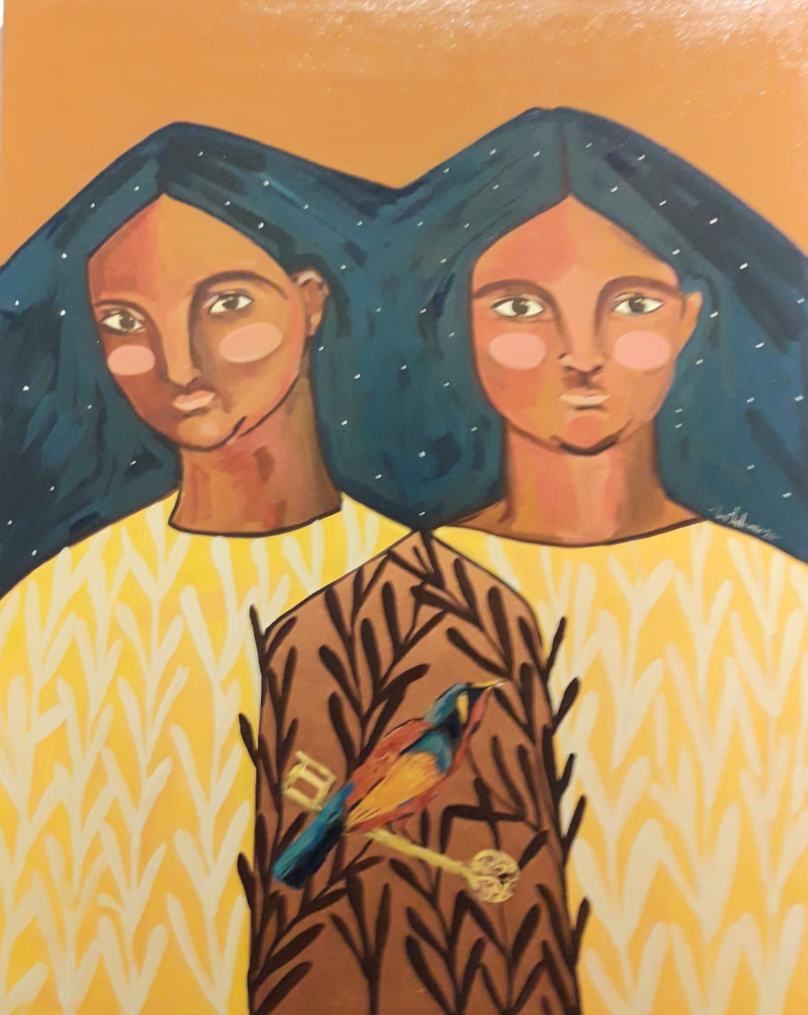 Miriam Salomón “La Salomón”, muestra tres piezas La Patria, Sororidad y Gestando el Cambio, “participo con dos obras inéditas que hice precisamente para esta exposición dentro del marco del 8 de marzo, me siento feliz de estar participando junto a mujeres tan talentosas y poder mostrar mi trabajo”.