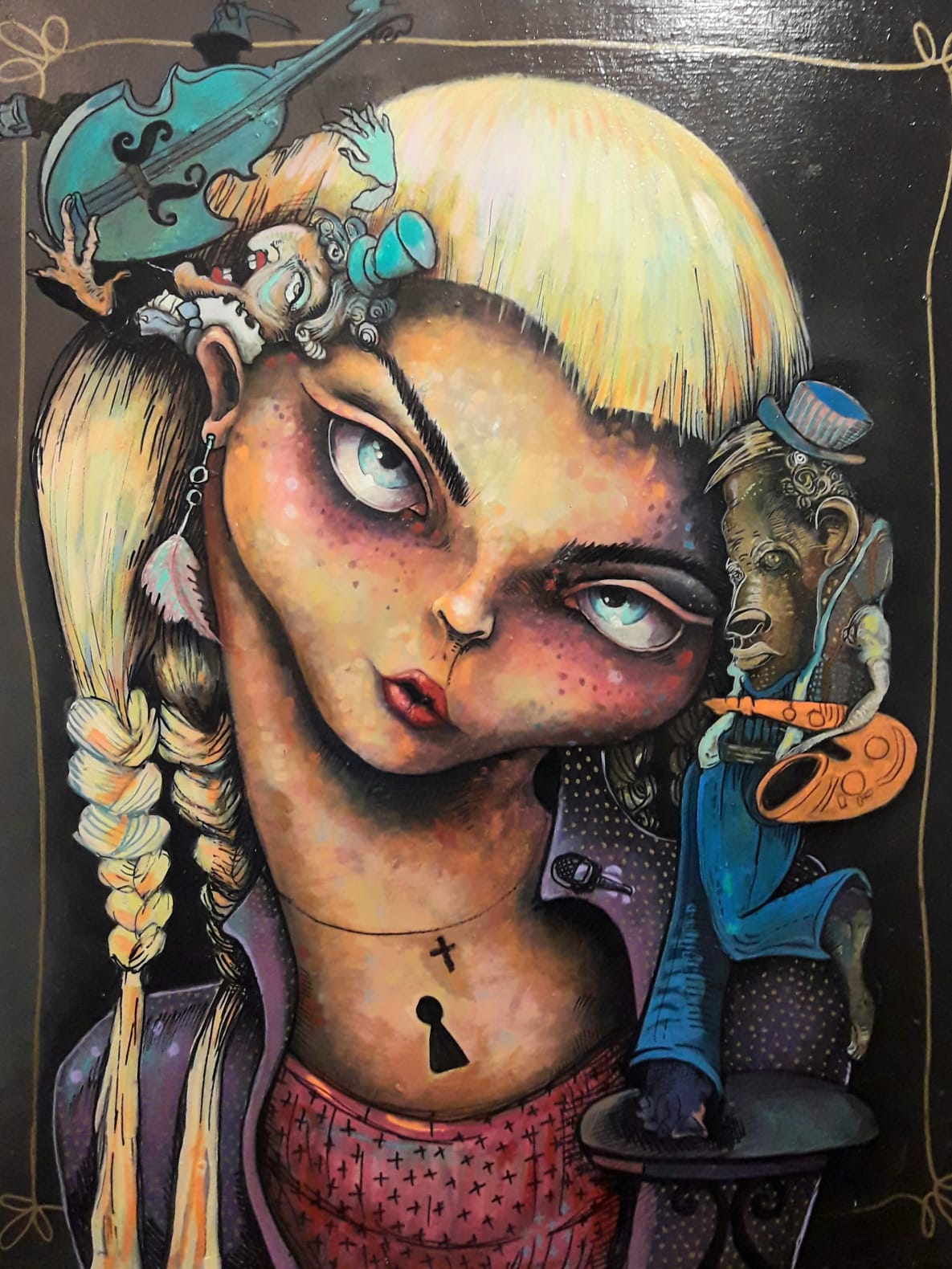 Jésica de la Garza “Gadga” “llevo cuatro ediciones participando en esta exposición, muy contenta de que ahora sean puras mujeres, más de 20 años viviendo en Tlajomulco, se ha ido transformando para bien la Casa de la Cultura, participo con tres piezas y me inspiro en la vida y en acontecimientos, la voz de las mujeres importa mucho. Tenemos mucho que decir y tenemos que conmemorar a la mujer ahora no como musas sino como artistas, creadoras”.