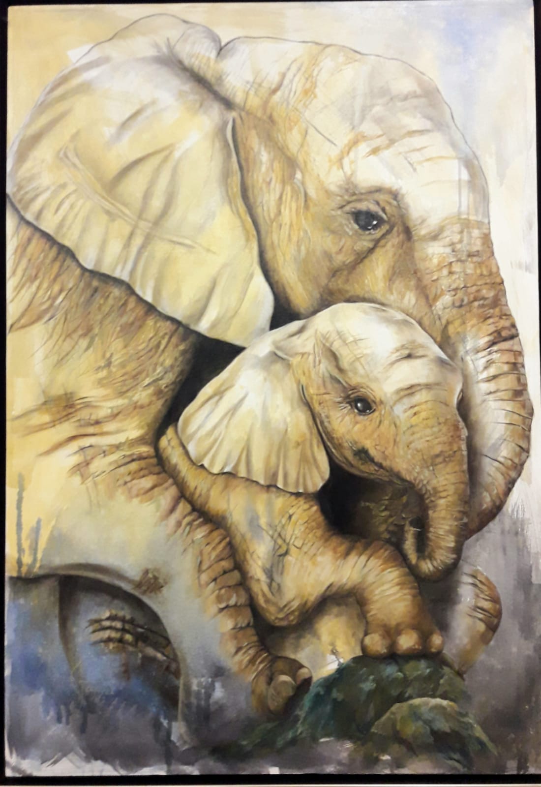 Elefante mamá con su hija, es el amor más puro es la representación de mi hija, es mi maternidad, no podía tener hijos y fue un milagro, hoy tiene 22 años y es un mujerón”.