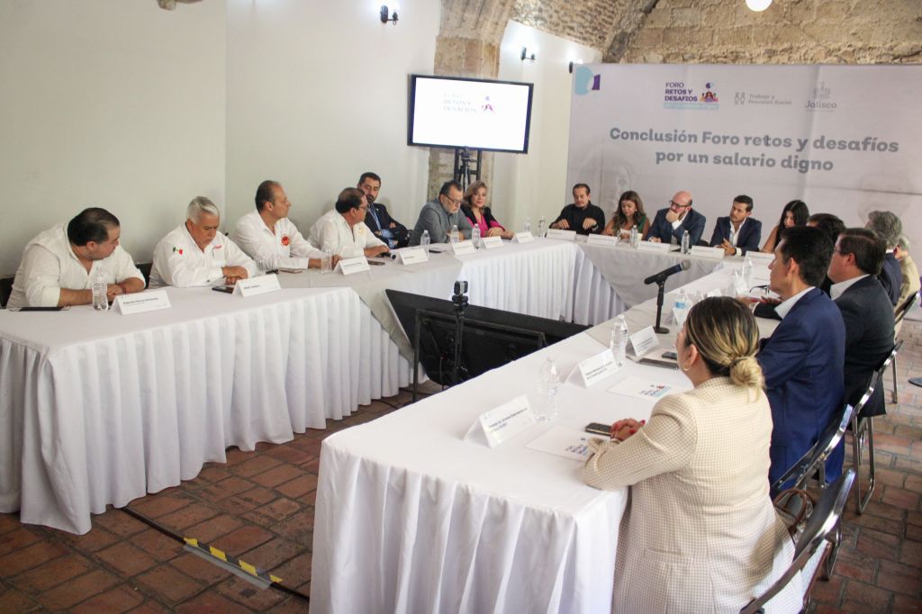 Secretaría de Trabajo y Previsión Social de Jalisco (STyPS) dió a conocer las conclusiones de las cuatro mesas, que se realizaron el 6 de marzo del 2023, en el “Foro retos y desafíos por un salario digno”, entre ellas: el equilibrio entre salario económico y salario digno; capacitación para los trabajadores; fidelización del empleado; incremento de prestaciones que agregan valor al ser humano; incrementar los ingresos de las empresas en esquemas tributarios más eficientes y aumentar el poder adquisitivo del trabajador.