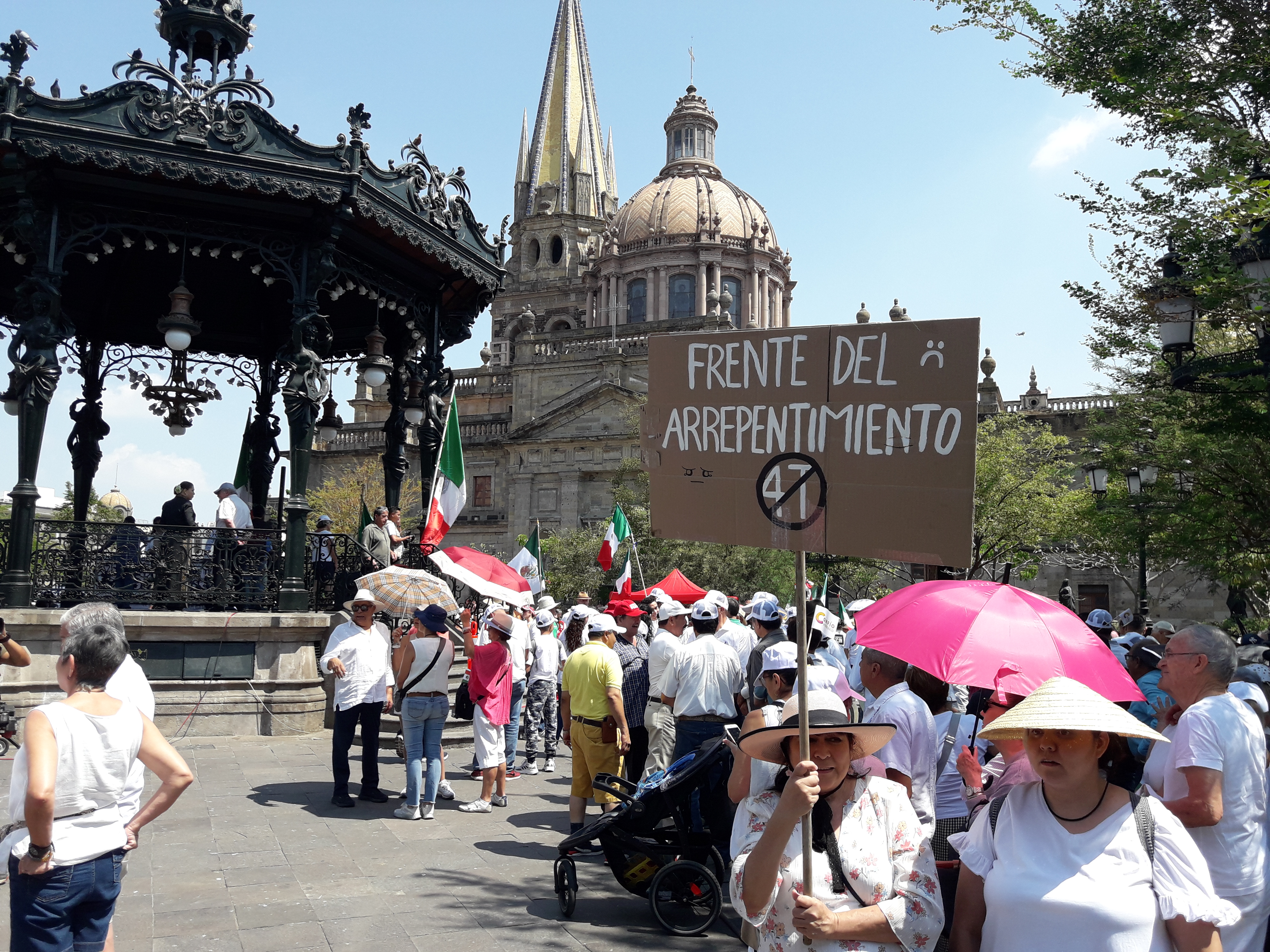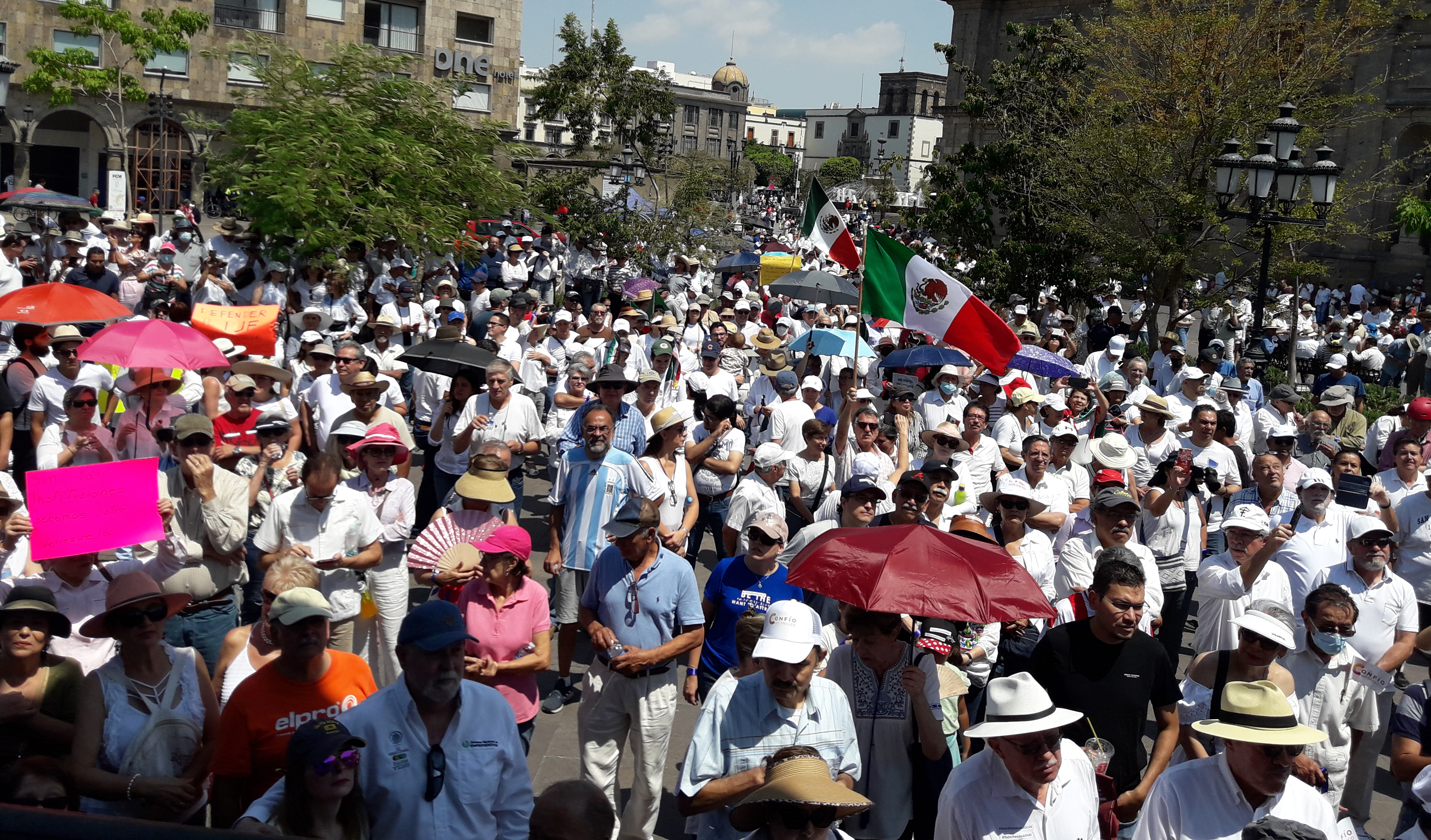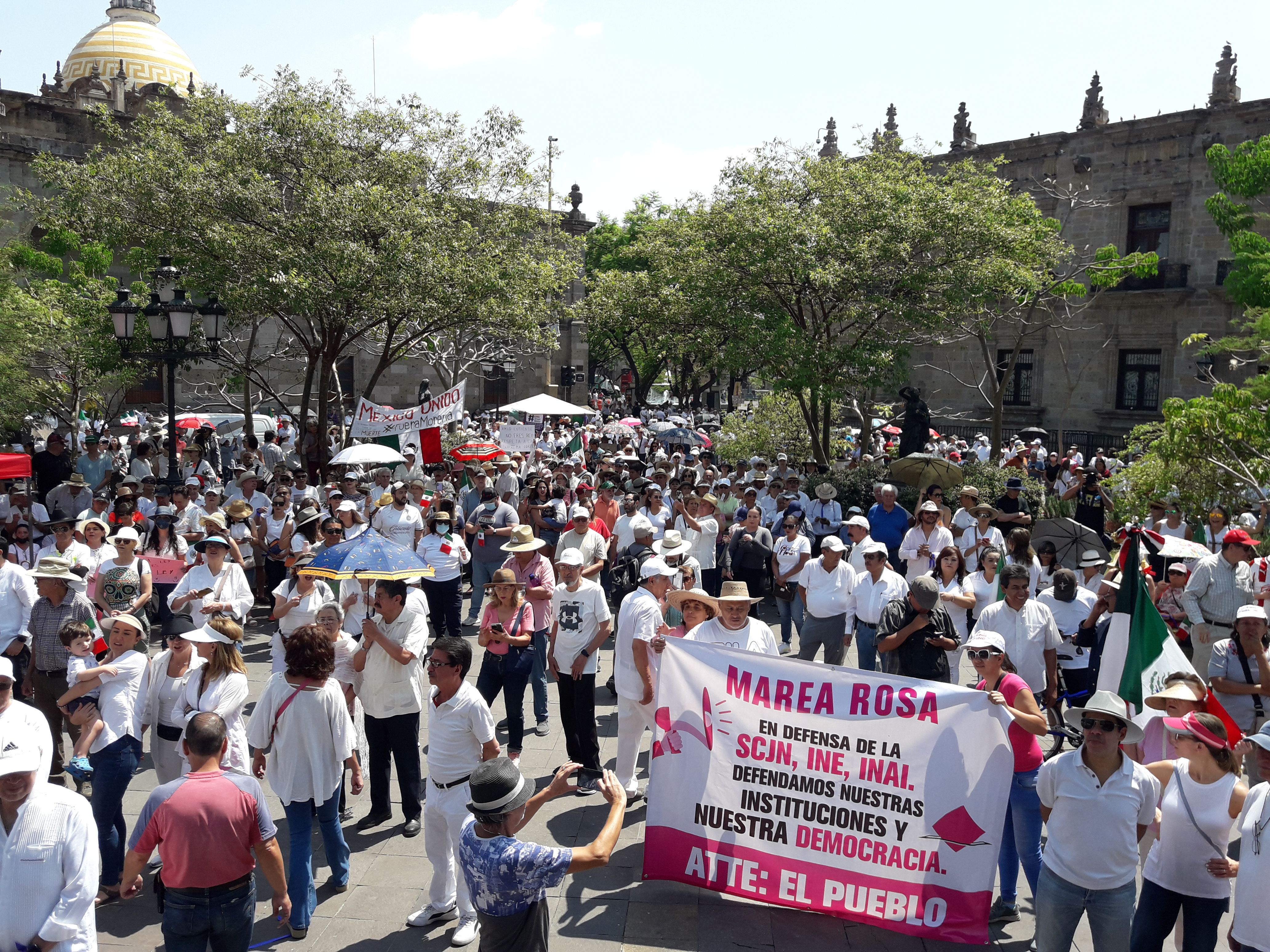Este domingo decenas de ciudadanos y grupos de la sociedad organizada se dieron cita en la Plaza de Armas del centro de Guadalajara, para manifestar su inconformidad por los embates y acusaciones que desde el Poder Ejecutivo Federal se dirige en contra de la Suprema Corte de Justicia de la Nación, contra el Instituto de Acceso a la Información y Protección de Datos, así como en contra del Instituto Nacional Electoral.