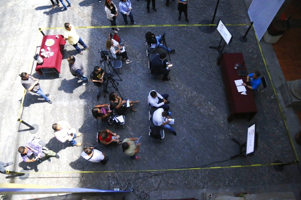 “Suena irreal, pero en el estado de Jalisco hay familias que todo el espacio que tienen para desarrollar su vida cotidiana son solo 38 metros cuadrados, el equivalente al área rodeada con cinta amarilla en la cual se desarrollo la rueda de prensa”.