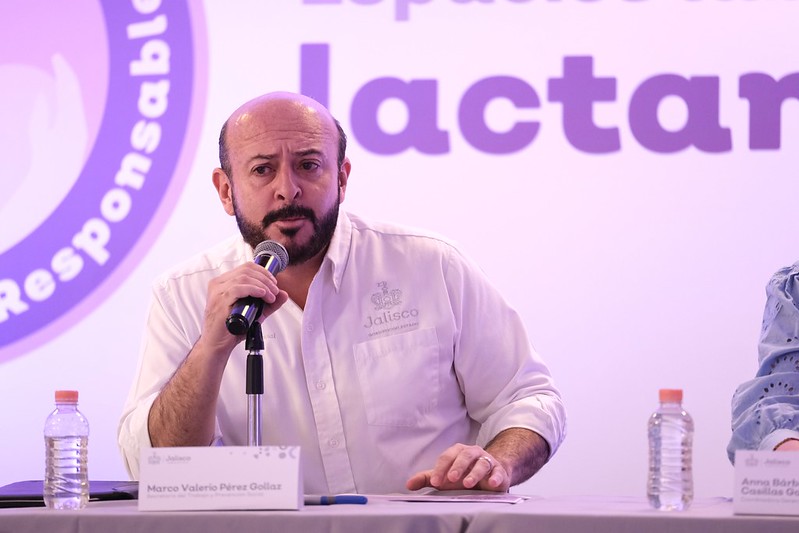 Marco Valerio Pérez Gollaz, titular de la Secretaría de Trabajo y Previsión Social (STyPS), detalló que: “El universo de trabajadores formales que tiene Jalisco es prácticamente un millón 900 mil personas, ese es el universo de las trabajadoras y trabajadores que pueden ser capacitados en esta ruta, esa será la primera modalidad el haber capacitado al 100% de la plantilla laboral. El segundo lugar es además de tener la capacitación del 100% es poder ser promotora e inclusiva en la lactancia, que significa esto, tener un lactario, un espacio idóneo para realizar las actividades de lactancia, por supuesto con las características de que sea un espacio flexible y privado”.