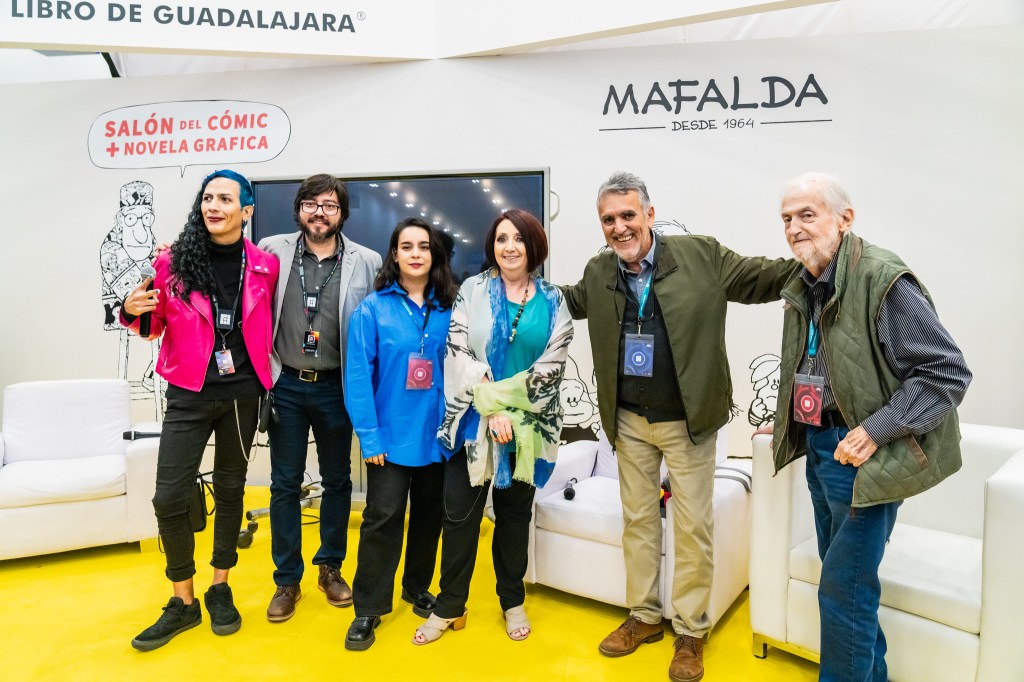 Ubicado en el Área Internacional, el Salón del Cómic + Novela Gráfica se integra por 40 stands distribuidos en más de 360 metros cuadrados. Este espacio está dedicado este año a Joaquín Salvador Lavado, Quino, y a su Mafalda, por lo que la primera charla contó con la presencia del editor del caricaturista argentino, Daniel Divinsky, quien estuvo acompañado por el también caricaturista tapatío José Trinidad Camacho, Trino.