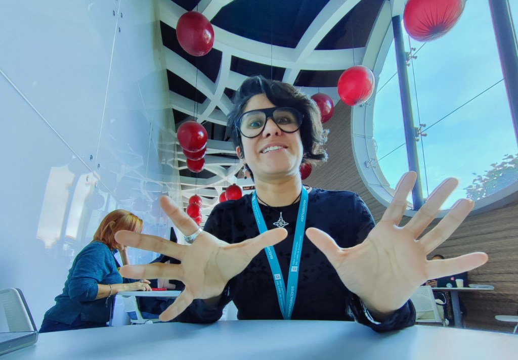 Se le expone la siguiente situación, está por los pasillos de la Feria Internacional del Libro de Guadalajara y a su paso, cae un libro frente a ella y de este surge un personaje.