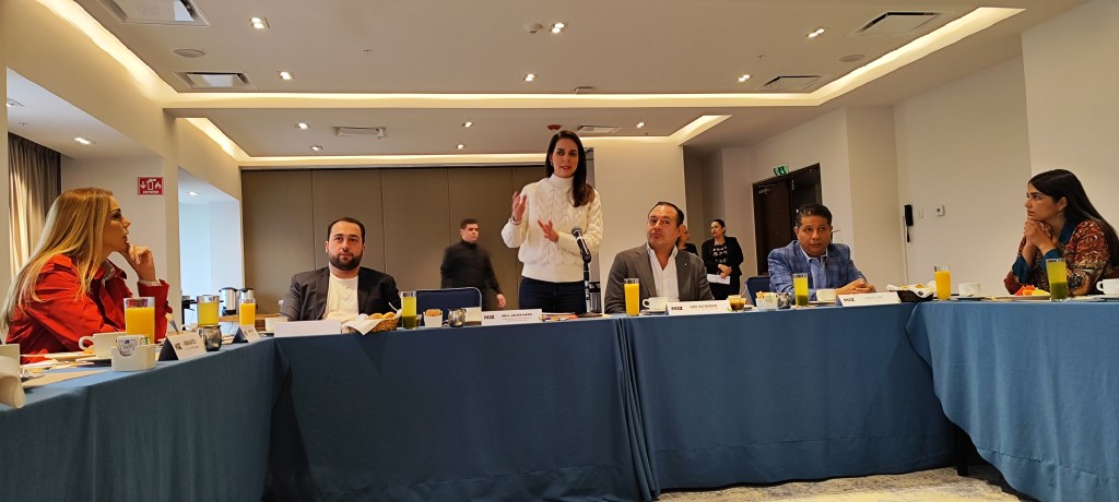 Laura Haro abanderada de la Coalición Fuerza y Corazón por Jalisco se presentó ante este grupo de empresarios como primera invitada, quienes hablaron sobre seguridad, participación ciudadana electoral, democracia y corrupción