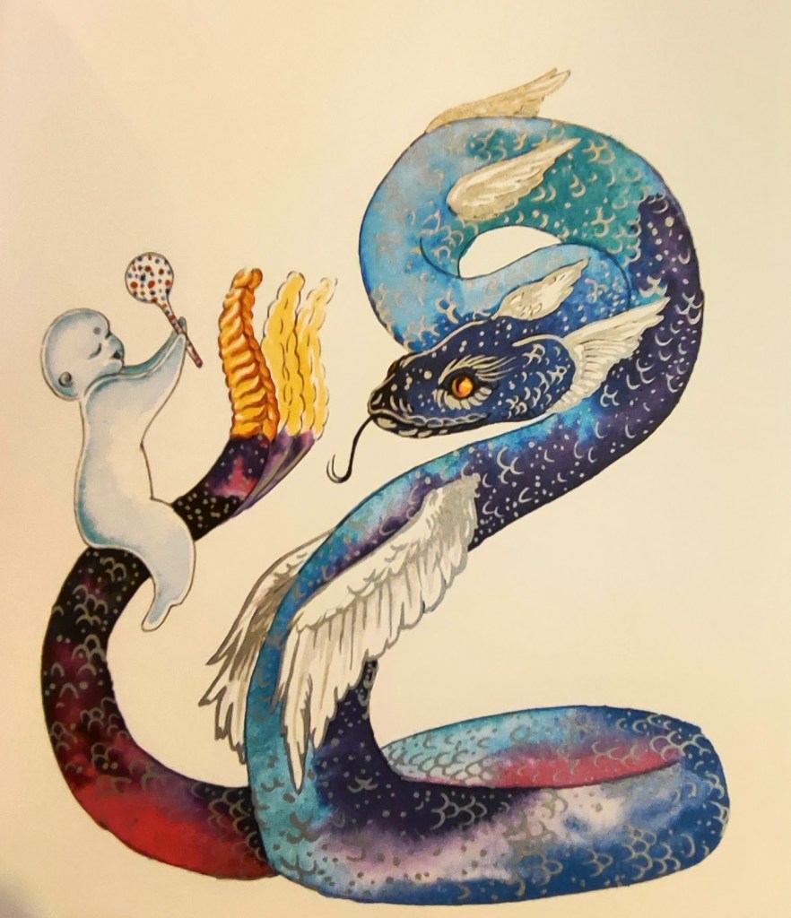 “Spooky estaba pensando en escribir las Fabudélicas del Alma y en estas se encontraba ya este concepto del espíritu, el alma, la vibración, el misterio, el eco entonces ya habíamos platicado, no fue solo eso de ahí te van los textos haz los dibujos, es un proceso completo desde que Spooky tiene esta idea de cada capítulo, pero luego nace Lucas y cambia toda esta experiencia, evoluciona con mayor intensidad con el nuevo bebé y se potencializa toda esta experiencia del alma y se transforma a algo más luminoso”, recuerda Mariana.