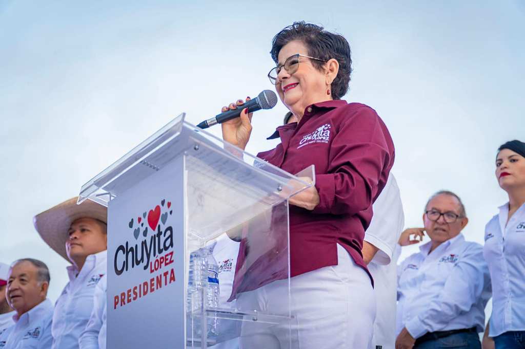Acompañada en todo momento de su esposo el Profe Michel y presidente municipal con licencia, Chuyita prometió que continuará habiendo un buen gobierno bajo su administración, luego de la victoria que encabece el próximo 2 de junio, e invitó a tachar en la boleta 6 veces a Morena, en referencia a que el voto también vaya para la Presidencia de la República, Senadores, diputados federales, locales y para el gobierno del estado.