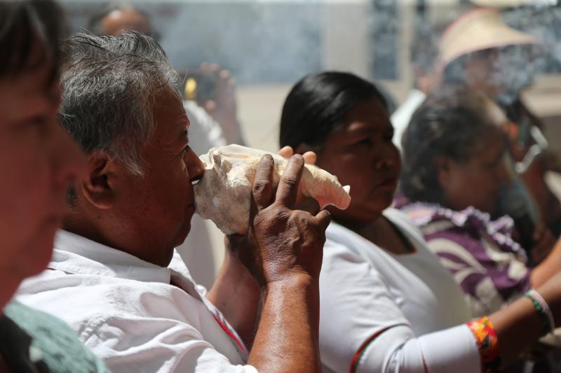 La celebración contó una ceremonia dirigida por representantes de pueblos originarios que bendijeron la celebración del aniversario con oraciones y rezos, una ofrenda floral, frutas y mazorcas, velas y un sahumerio, plumas, un violín, fuego y sonido de caracoles.