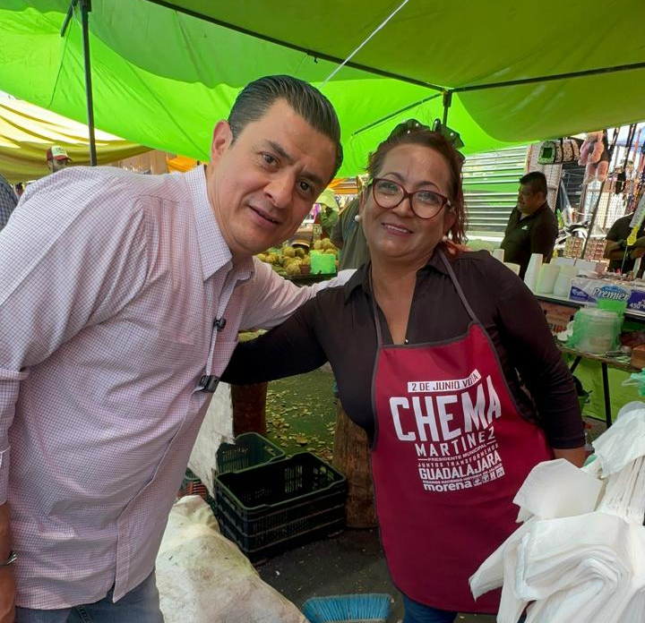 El candidato a la alcaldía de Guadalajara por la Morena, José María «Chema» Martínez, recorrió este jueves la colonia Agustín Yáñez, el tianguis y el mercado a fin de socializar su proyecto de cambio para la ciudad; ante el abandono en el que están los mercados de la Perla Tapatía, el morenista prometió un rescate de todos estos espacios.
