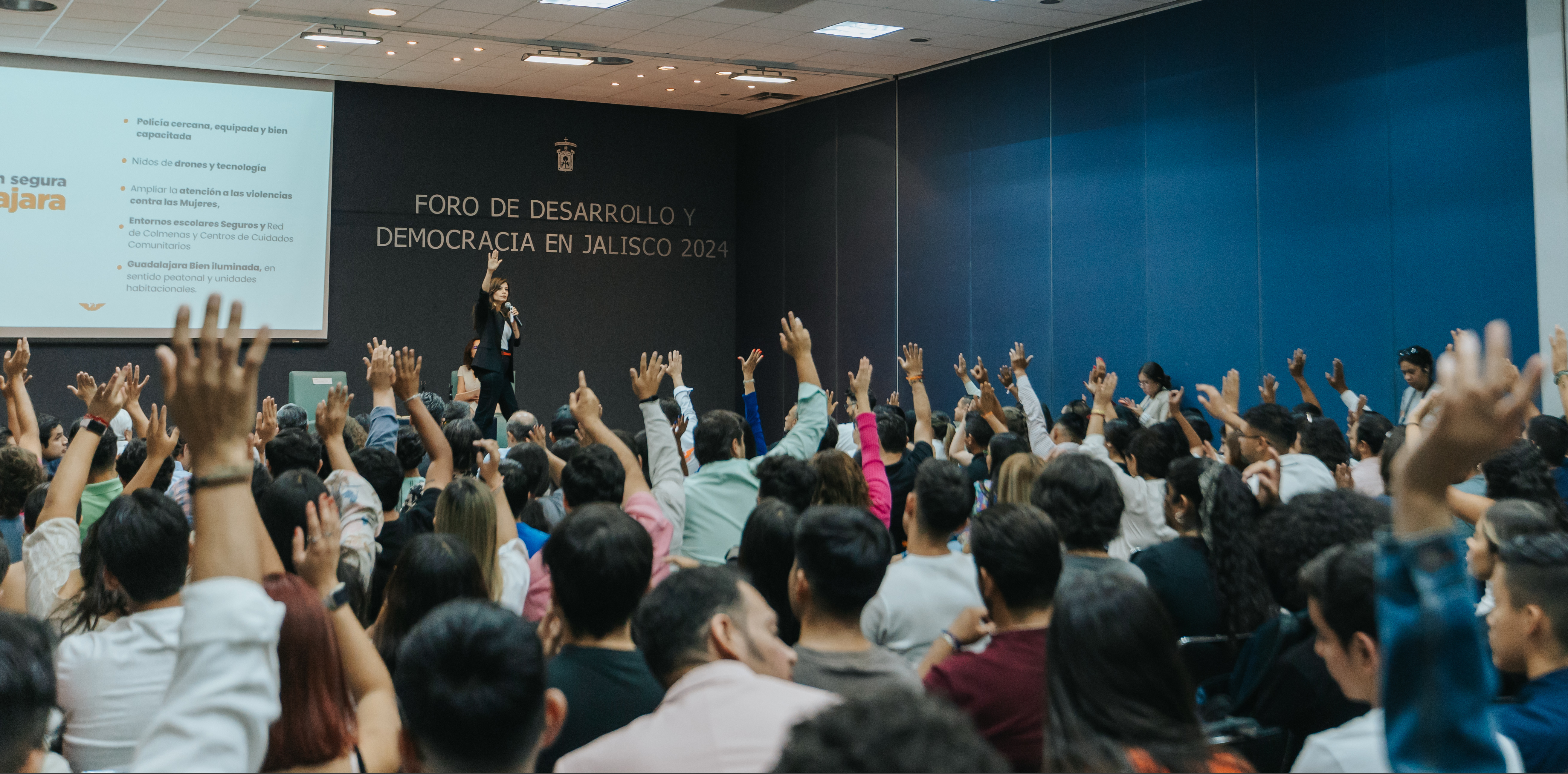En un foro repleto de jóvenes universitarios, la candidata a Presidenta de Guadalajara, Verónica Delgadillo, presentó su plan de trabajo y los invitó a involucrarse en el próximo proceso electoral del 02 de junio.