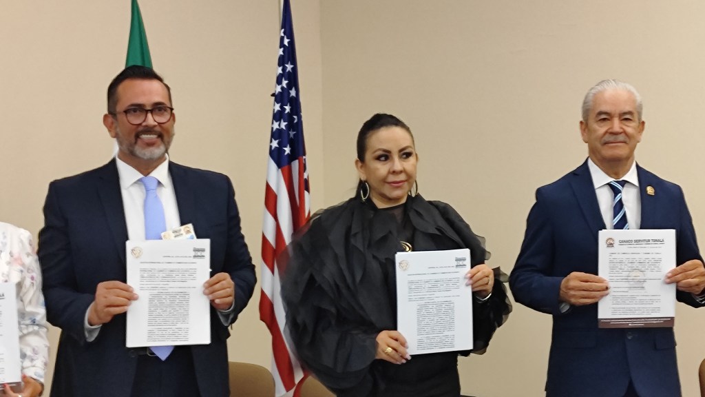Acompañaron a la firma de este convenio el Presidente de la Cámara de Comercio de Tonalá, Pedro Navarrete Saldivar; Marta Esthela Arizmendi, diputada electa; y la presidenta de la Fundación Expo Guadalajara Geraldina Herrera Vega.