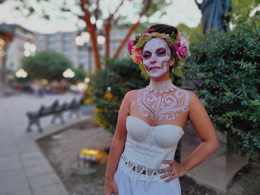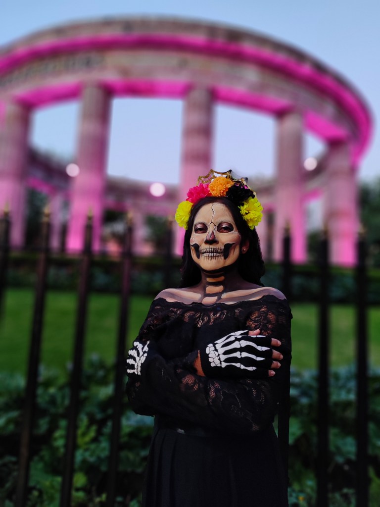 “Me siento agradecida de estar con vida, he aprendido que un seno no soy yo en mi totalidad, ha sido difícil al principio, pero gracias a Dios encontré el apoyo de Pina y su gente quienes, con sus pláticas, charlas, nos dicen que también pasaron por todo lo que una va sufriendo, pero aquí estamos felices para festejar la vida, curioso verdad con Catrinas, pero muy vivas y bonitas”, comenta Elena quien llegó desde las 14:00 para ser maquillada y participar en este evento.