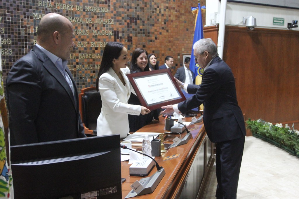 Este martes y en sesión solemne los diputados que integran la LXIII Legislatura, entregaron un reconocimiento a Enrique Ibarra Pedroza por –a su decir- su contribución al desarrollo político y democrático del estado, además de su impulso al acervo histórico del Estado de Jalisco.
