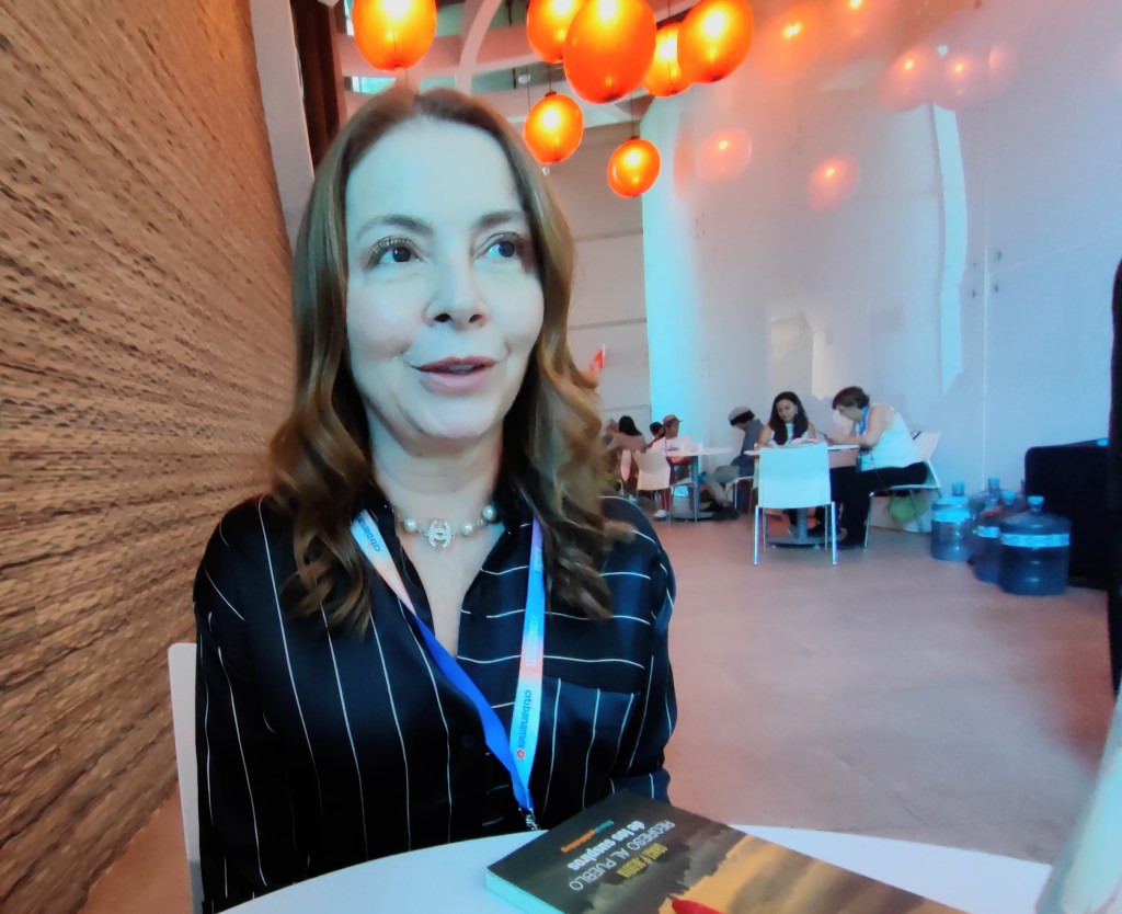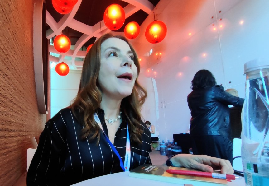 “Ella pregunta con curiosidad y qué pasó después de eso que escribí, los personajes están conscientes de que ella es la escritora y es una cosa que me fascina. El poder como escritora encontrarme con mis personajes y poder hacerles preguntas eso me resulta muy fascinante. Y de ahí para el manicomio. Esquizofrénica por decir que escucho voces y que son mis personajes”, suelta ahora si una contagiosa carcajada que provoca que algunas personas se acerquen a la mesa a ver de qué se trata tan amena charla.