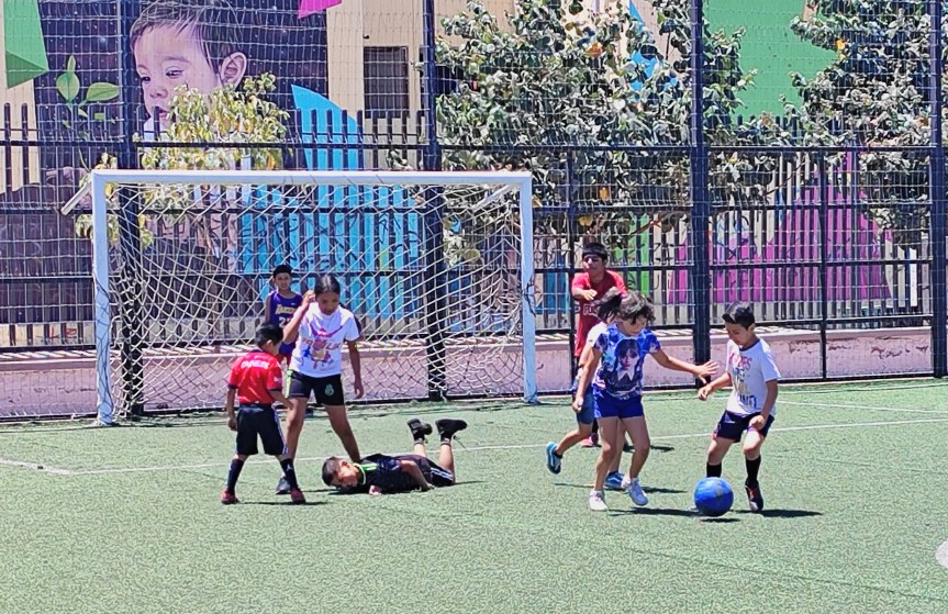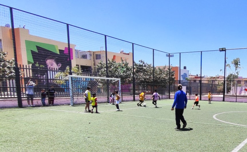 “¡DIVERTIRNOS!”, responden los pequeños ahora sí emocionados y se les hace tarde para entrar a la cancha.
